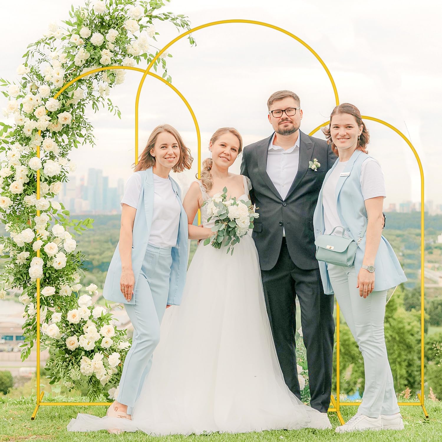- ⭐Easy to Install - Arch Backdrop Stand: Each arch is cut into short sections, wedding arch stand can be easily assembled with wing screws in minutes and reuse for next event. Matching flower, arch cover and cylinder stand, backdrop arch stand create a truly stunning looking for your event.
