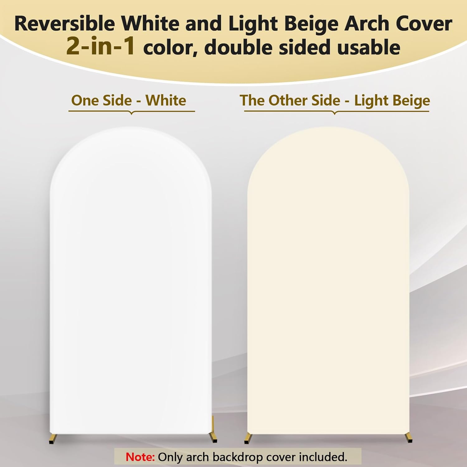 - Thick Spandex Arch Cover: This 7.2 ft white and light beige arch backdrop cover is made of stretchy spandex, not see through, 2-sided and zipper design for seamless decoration, perfectly display your party decoration on either side âš One Arch Cover with Double Color
