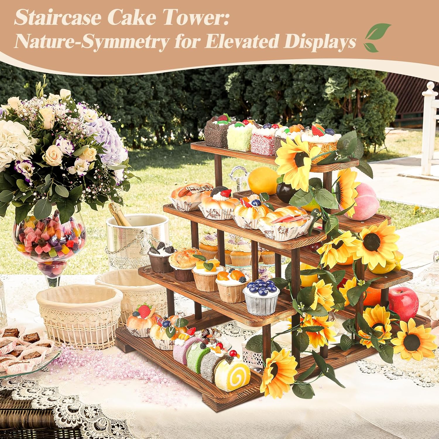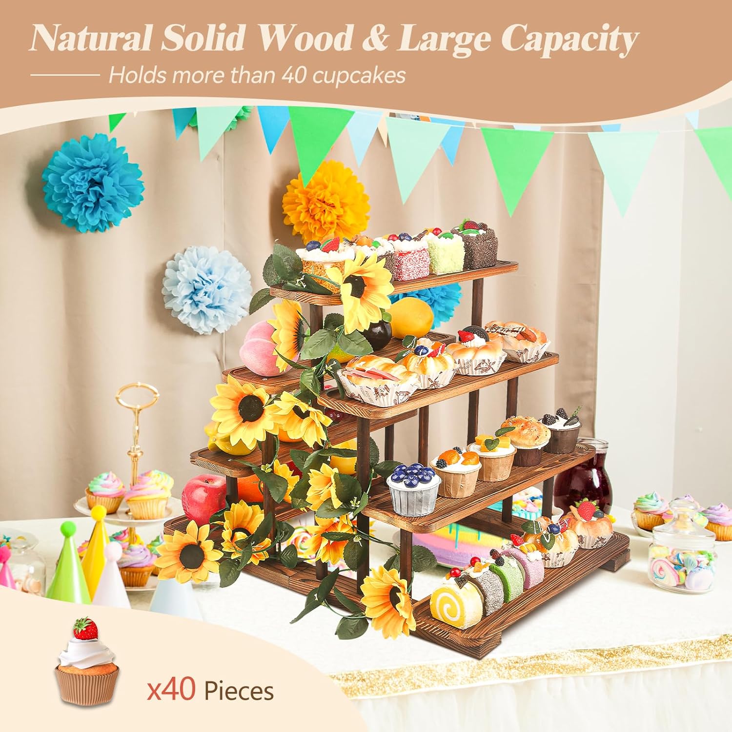 - Premium Wooden Cupcake Stand: Crafted from solid wood with a carbonized finish for durability, this dual-sided dessert stand is burr-free with only a subtle natural wood scent. This dessert stand won't break or deform. Beautifully showcases authentic wood grain and natural tones. Perfect for all your dessert displays