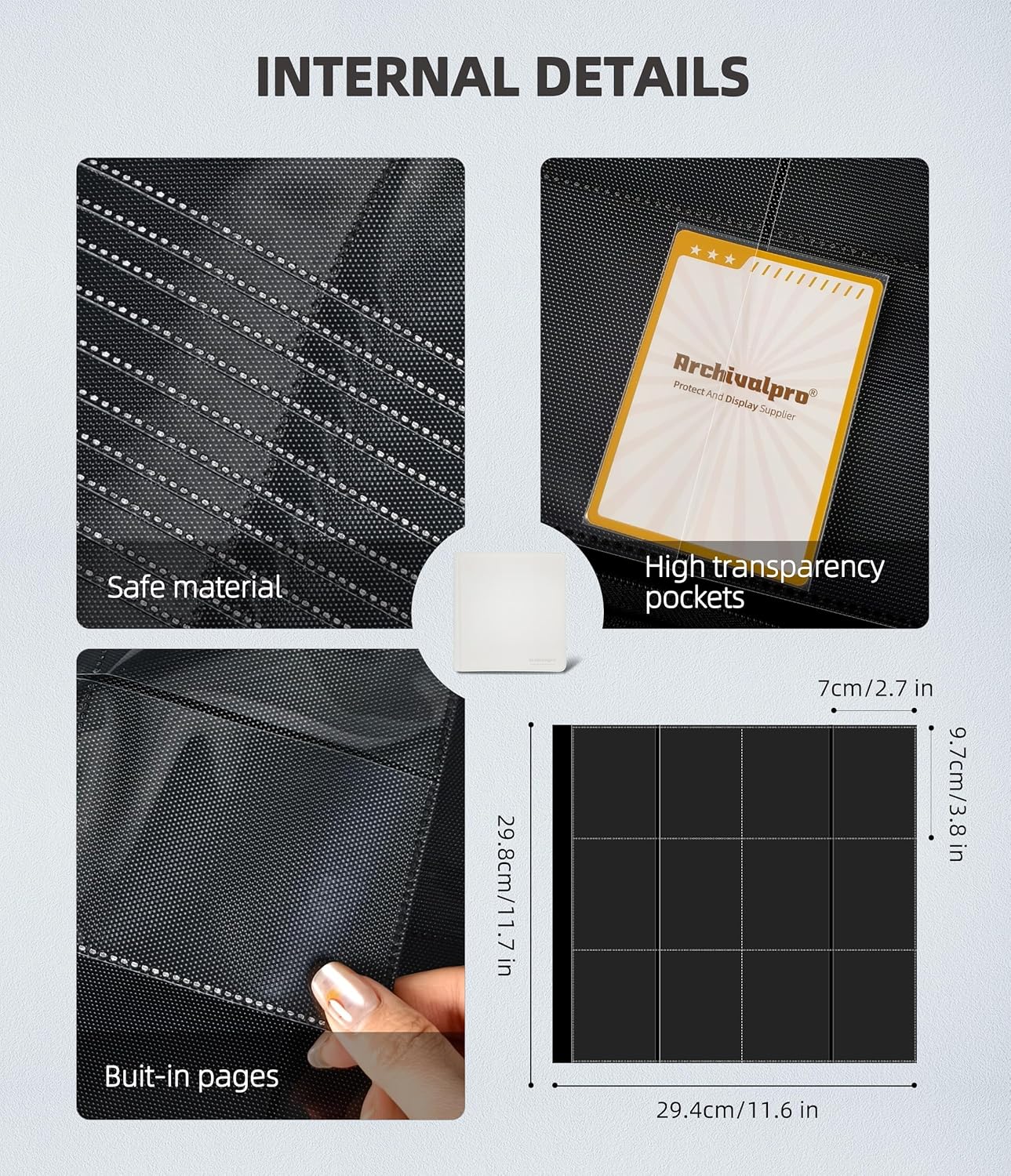- ✨✨This is a Premium Trading Card Binder with premium quality,Archivalpro sleeves card binder will keep your cards out from damage,dust,and moisture.