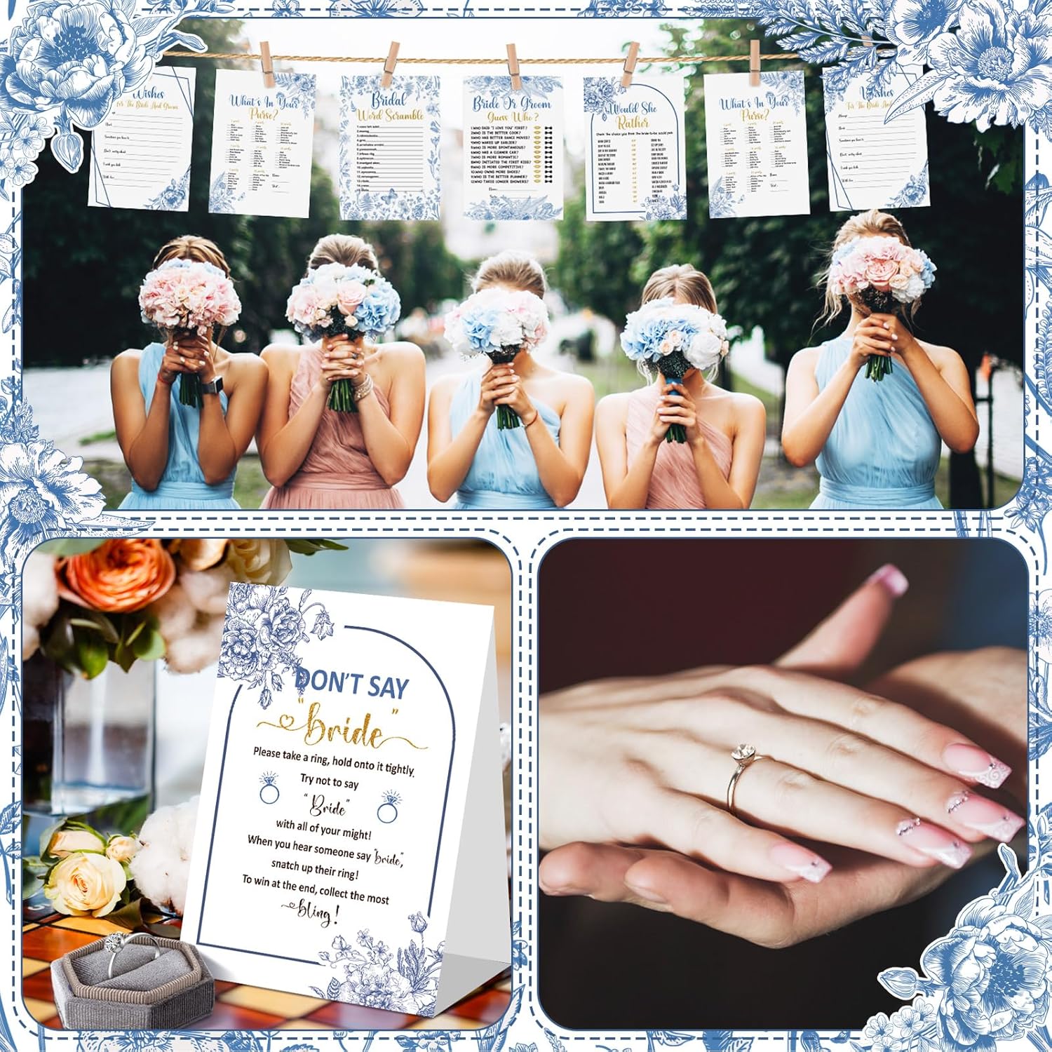- Delicate and Classic: the put a ring on it bridal shower games are designed mainly in blue and white colors, clearly printed and full of blue floral patterns, and they can meet the aesthetics of most people