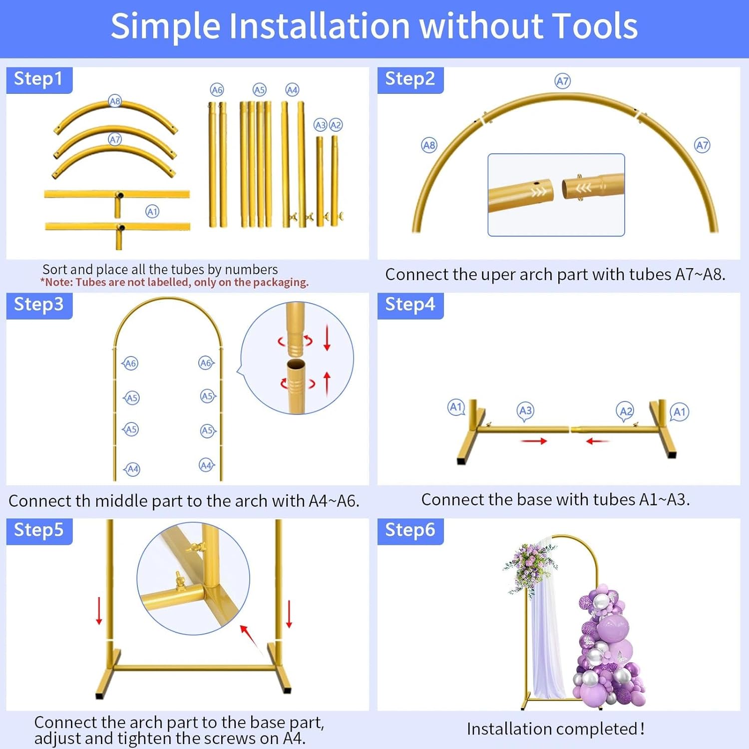 - Decorative Possibilities: The gold arch stand can be decorated with balloons, floral backdrops, greenery, tulle, fabric, LED lights and garlands and more, perfect for creating balloon arches, wedding arch stand, background arch stand, photo backdrop arch