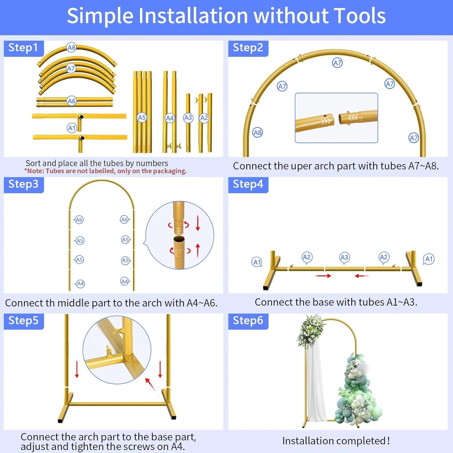 - Decorative Possibilities: The gold arch stand can be decorated with balloons, floral backdrops, greenery, tulle, fabric, LED lights and garlands and more, perfect for creating balloon arches, wedding arch stand, background arch stand, photo backdrop arch