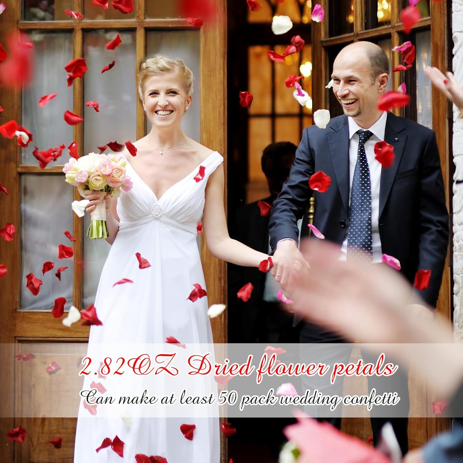 - Good Wedding Petal Toss: You will have 2.82 oz red rose petals, enough for about 15 tosses at a wedding and enough for regular table decorations, when you sprinkle them in the air, it forms a beautiful rain of petals and let yourself be in nature at the same time