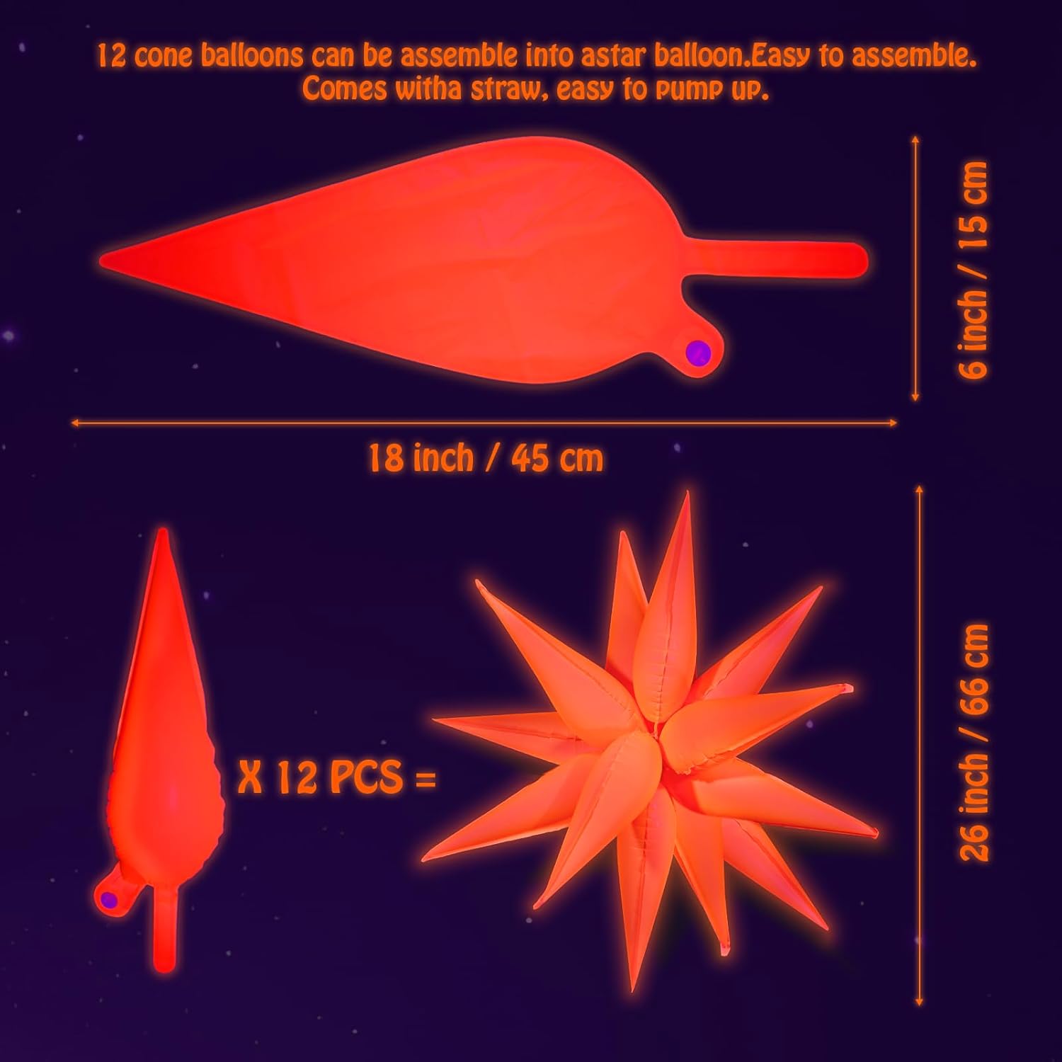 - 【 Steps to make Star Foil Balloons 】: Make your party shine with these neon star foil balloons! Just inflate 12 balloons, tie into 6 pairs, then connect and twist at the knots to create a sparkling 3D star. Perfect for dazzling birthday decor and Neon Glow photo backdrops.