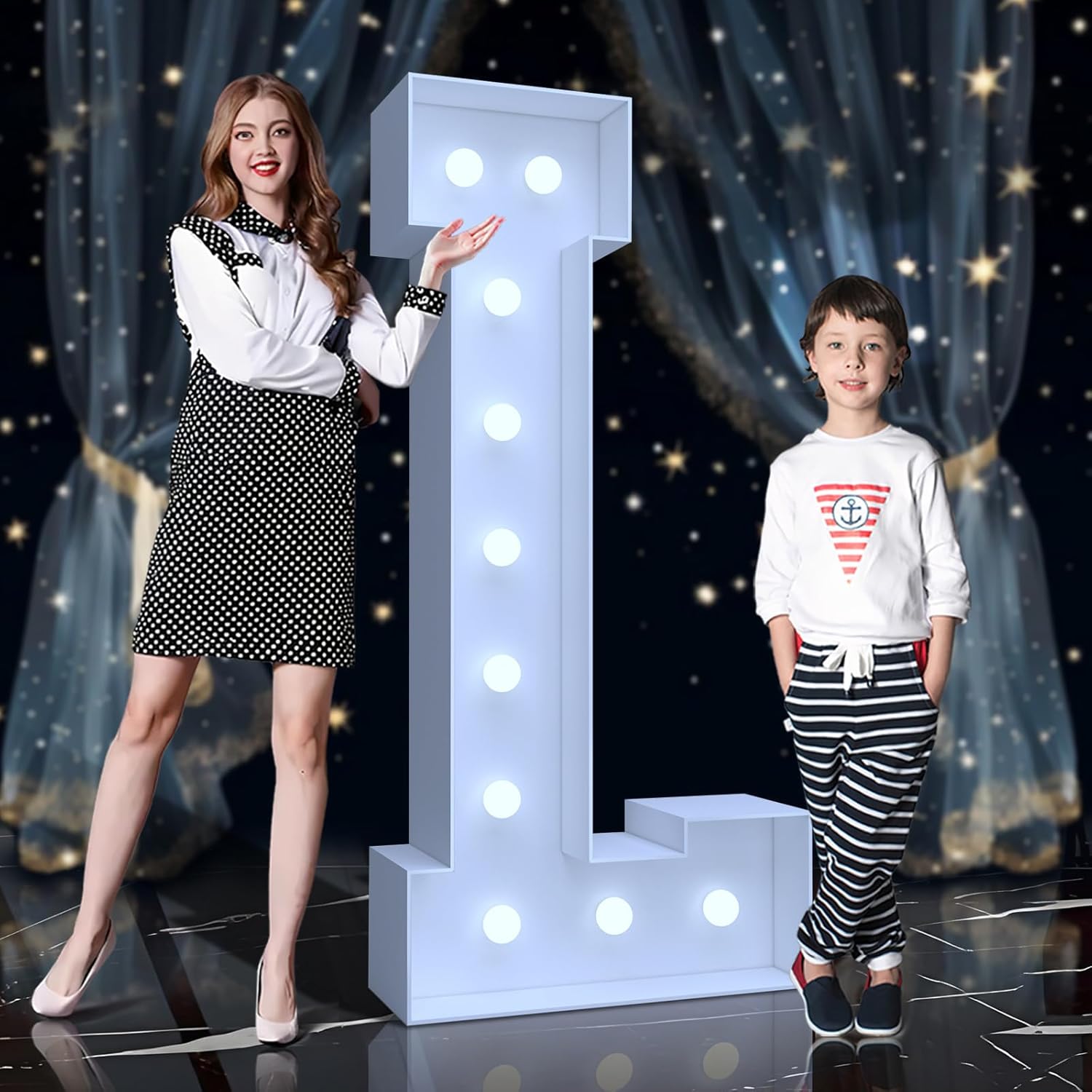 4FT Marquee Light Up Letters L – Cool White LED, Easy to Assemble Foam Board with Back Support, Large Marquee Light Up Letters for Birthday, Wedding, Party, Anniversary, Baby Shower Decor