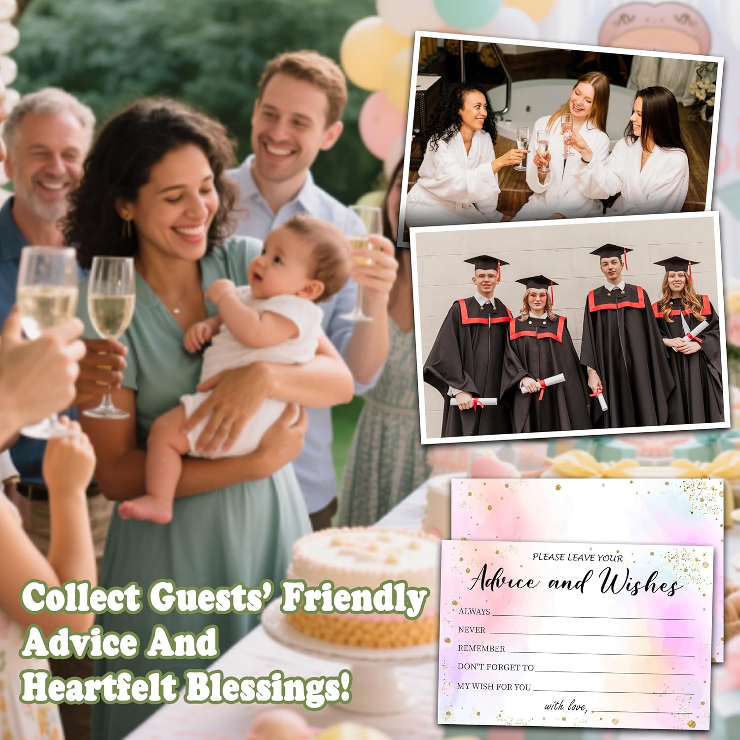 - A must-have for parties: advice and wishes card is suitable for all kinds of celebrations. It can not only make the event more interesting and enhance the experience of each guest, but also leave beautiful memories and make your event more memorable.