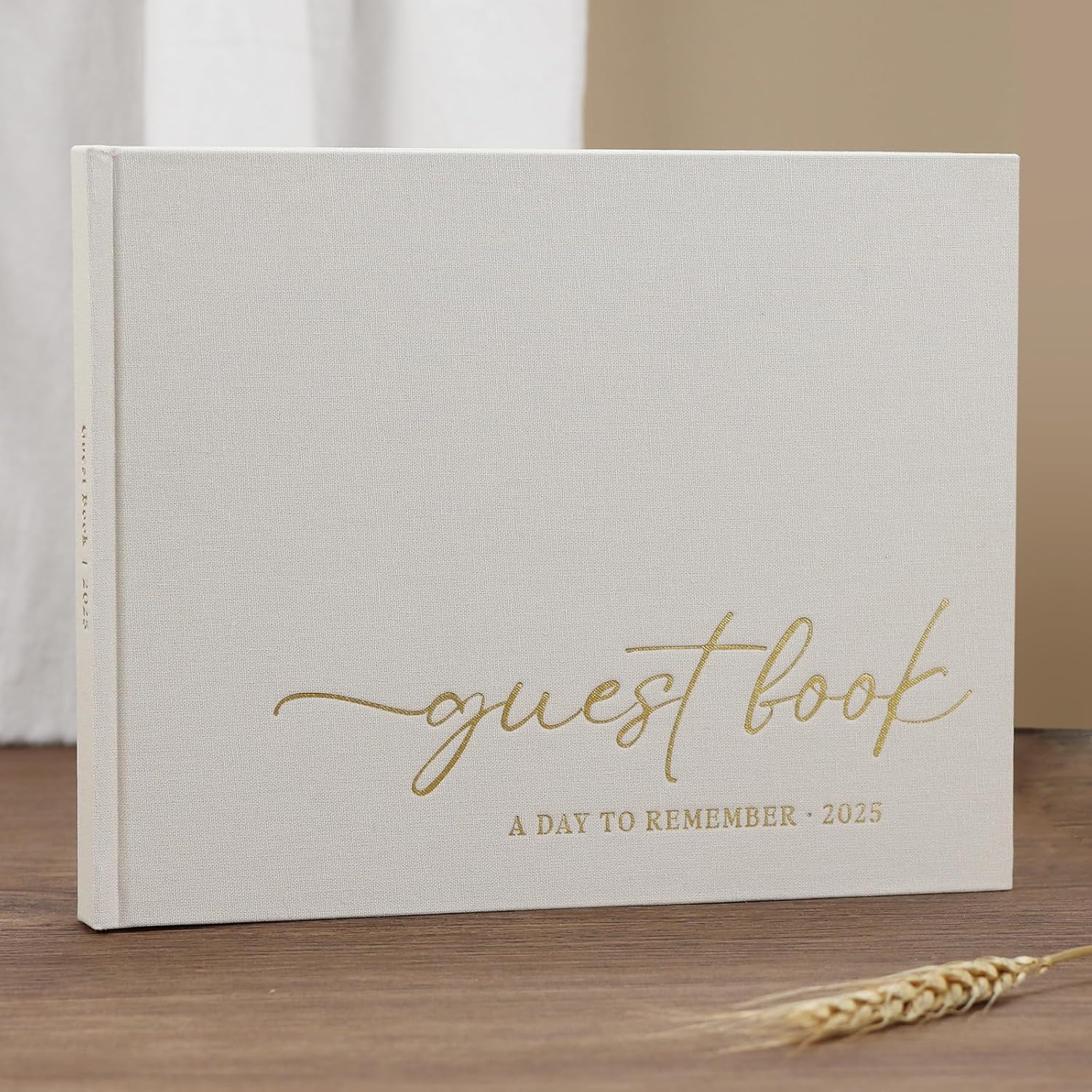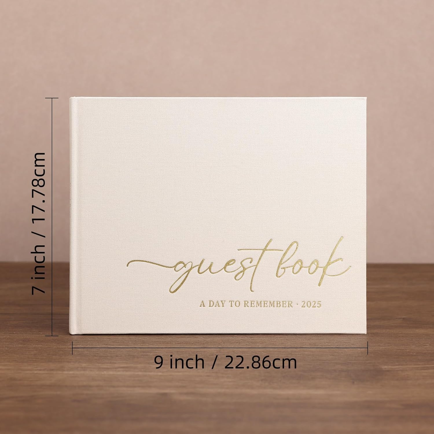 Elegant Guest Book for Wedding Reception, Beautiful Guestbook for Baby Shower and Wedding Decor, 100 Blank Pages for Sign in, Polaroid Pictures and Photos, Linen Cover (2025, Beige)