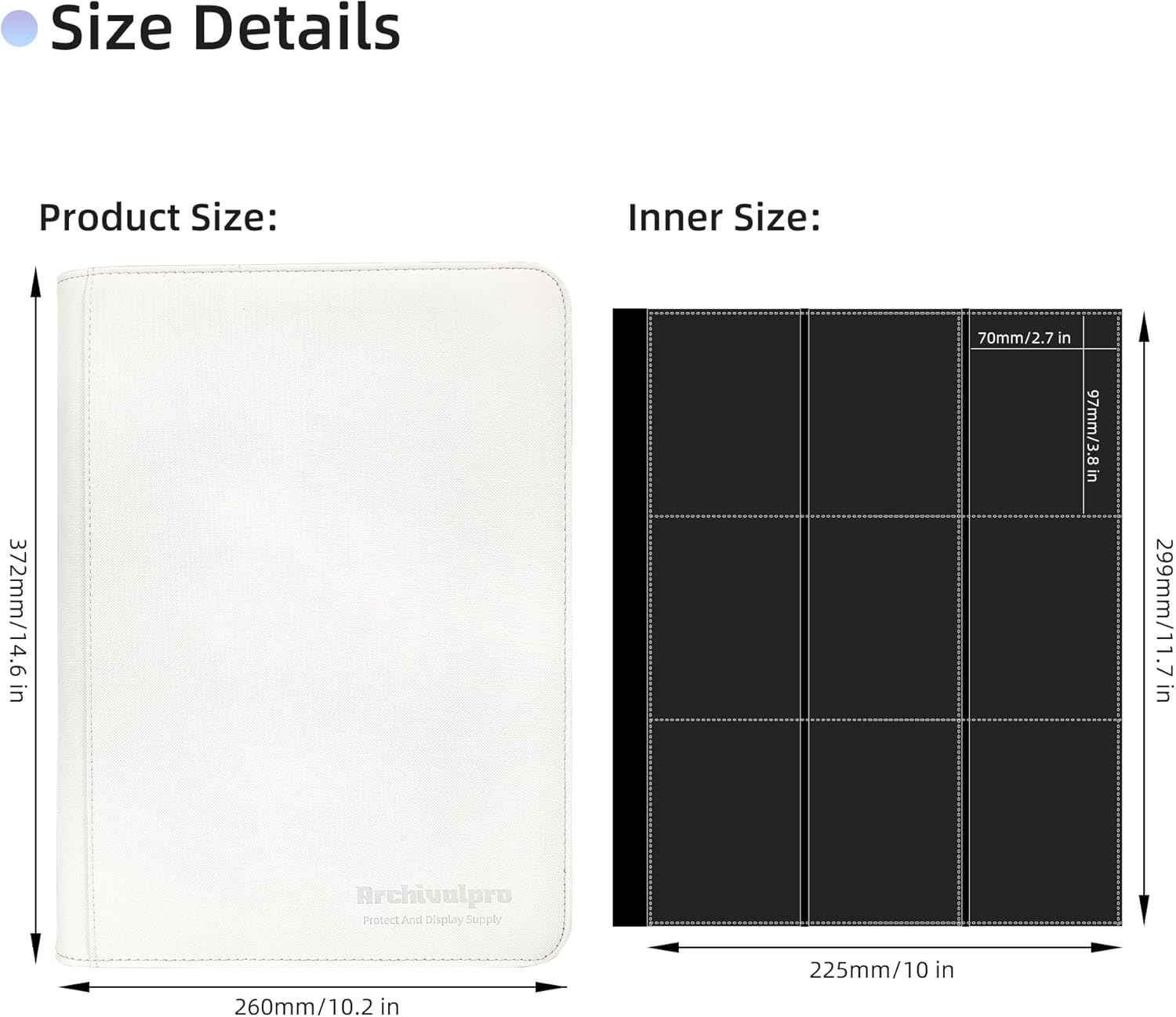 - ✨✨This is a Premium Trading Card Binder with premium quality,Archivalpro sleeves card binder will keep your cards out from damage,dust,and moisture.