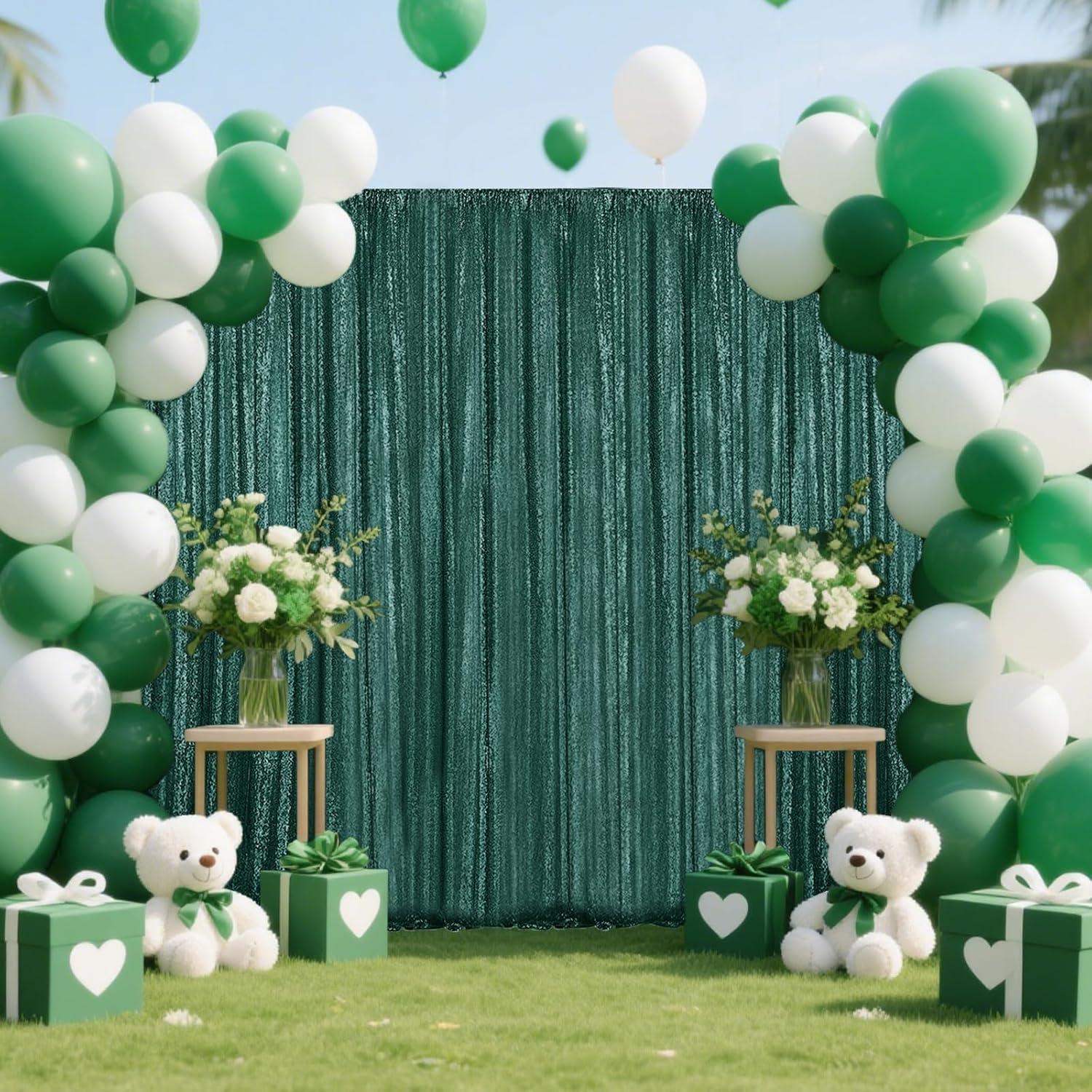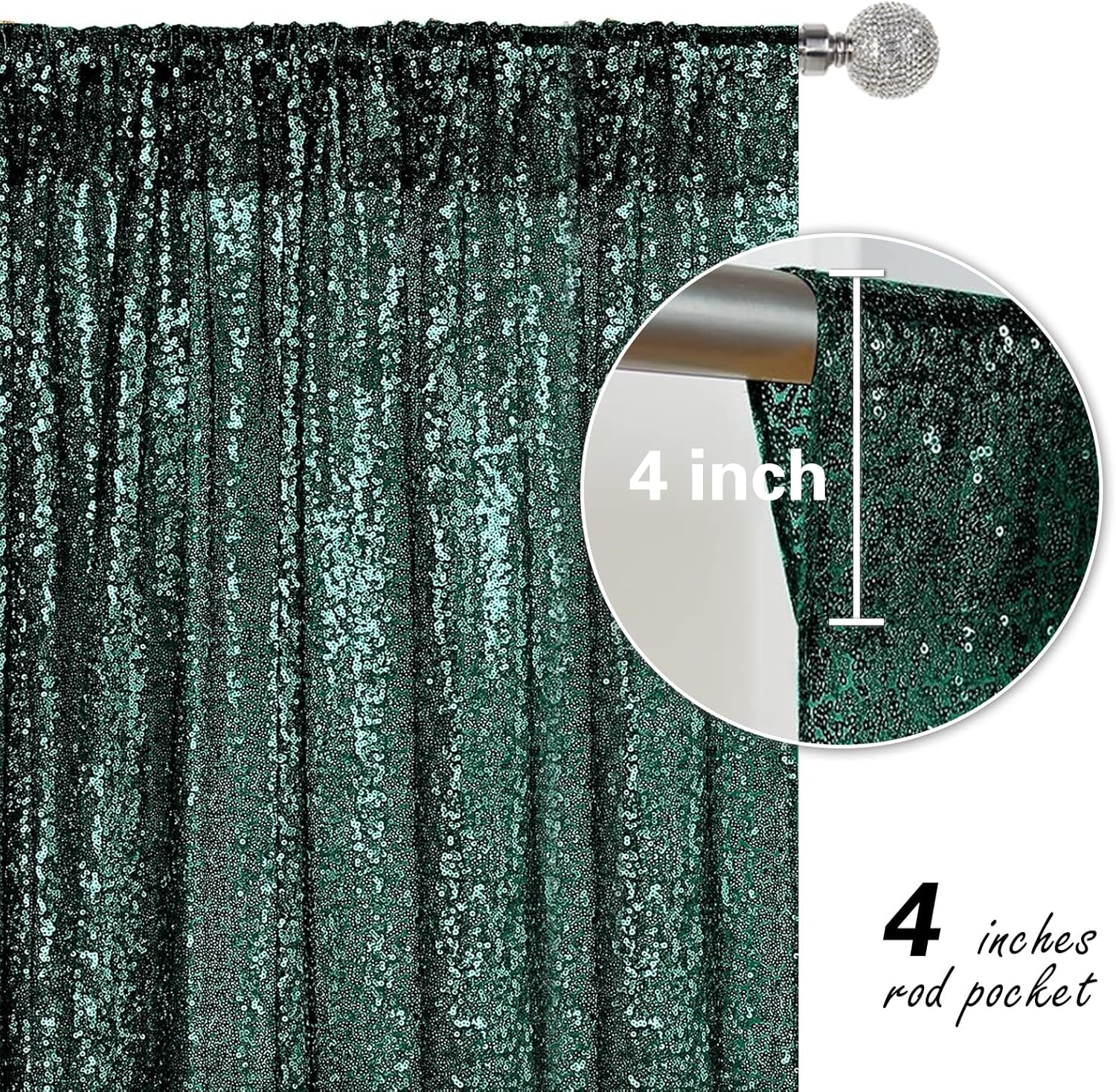 Dark Green Sequin Backdrop Curtain 2 Pieces 2FTx8FT Glitter Photography Backdrop for Party Wedding Birthday Christmas Decorations