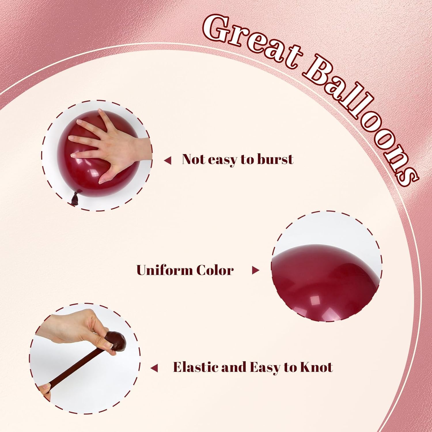 - Easy to Assemble: This kit comes with ribbons and glue dots, making it quick and easy to create party decorations. Simply inflate the burgundy and rose gold balloons and secure them in place with the glue dots. You'll have a beautiful balloon display ready in minutes, adding instant festive charm