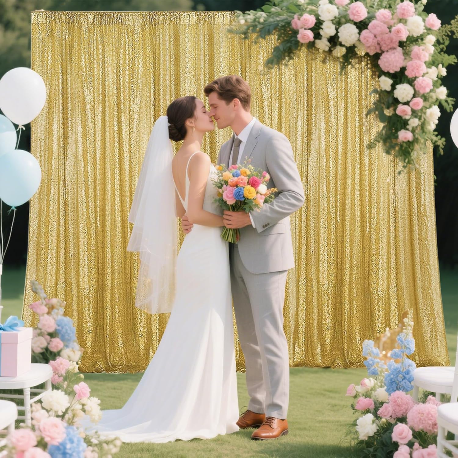 Gold Sequin Backdrop Curtain 2 Panels 2FTx8FT Glitter Photography Backdrop for Party Wedding Birthday Christmas Decorations
