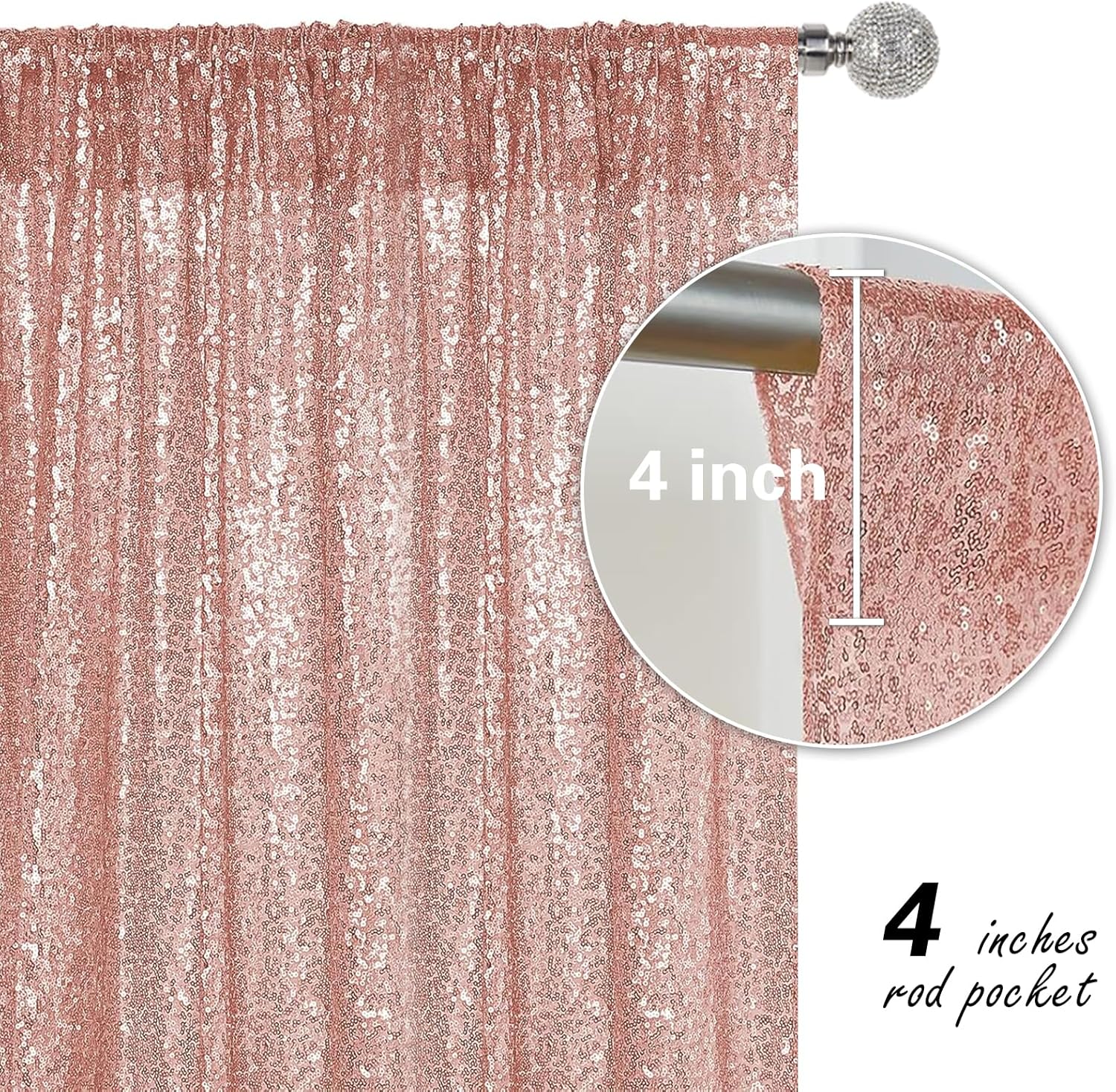- Package Include: 4Pcs 2FT Wide X 8FT Height sequin backdrop curtain with a 4-inch wide rod pocket on the top, which is easy to install.