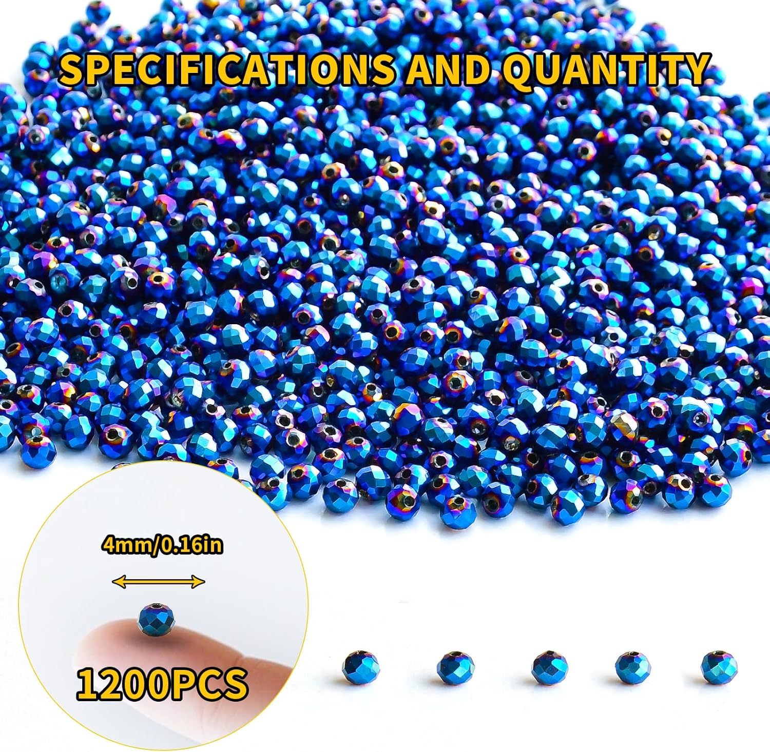1200Pcs 4mm Crystal Glass Beads for Jewelry Making Beads for Bracelets Necklace Pendants Making Supplies(Peacock Blue)