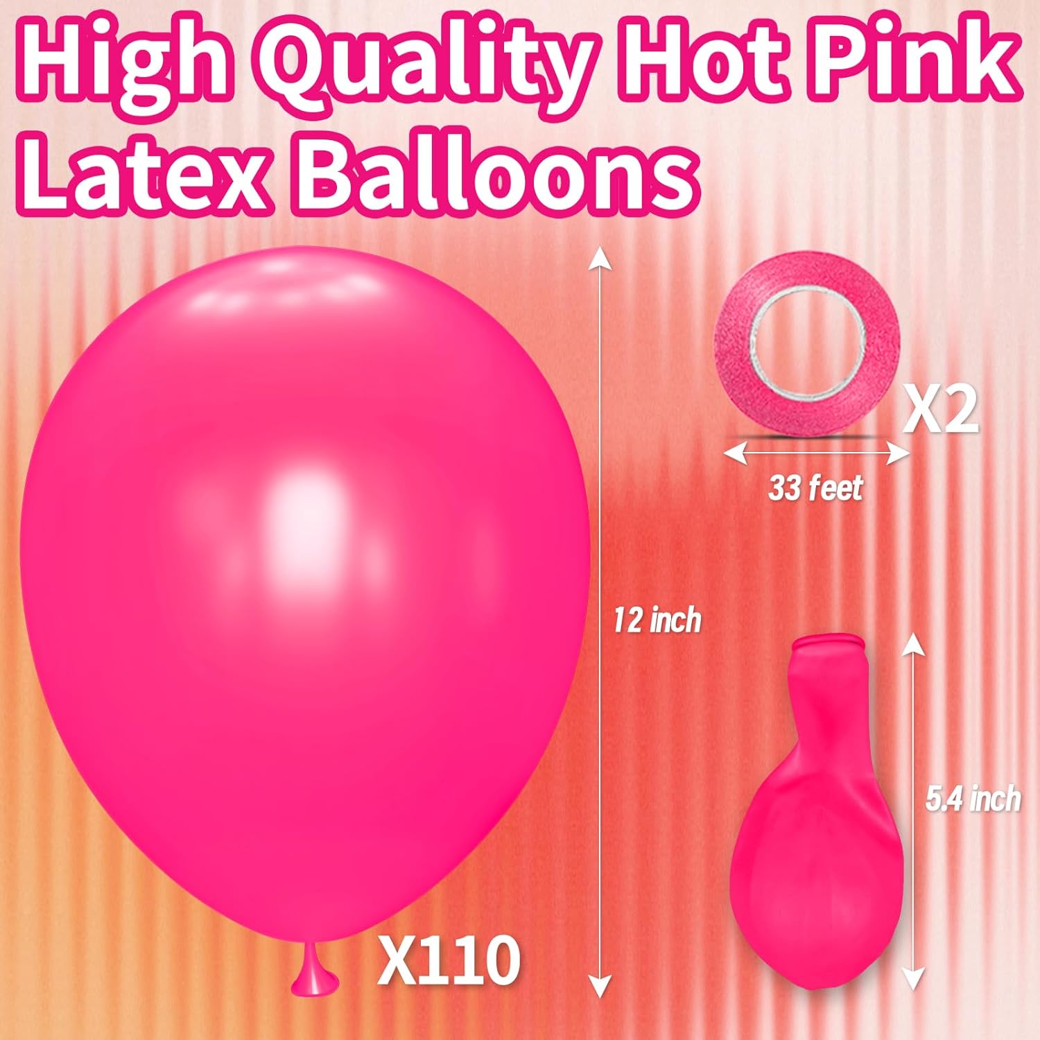 - 110-Count 12" Electric Hot Pink Latex Balloons:Ultimate impact pack! 110 vibrant 12-inch balloons with neon-bright pigment—dominates parties, photo ops, or influencer events where bold style matters.