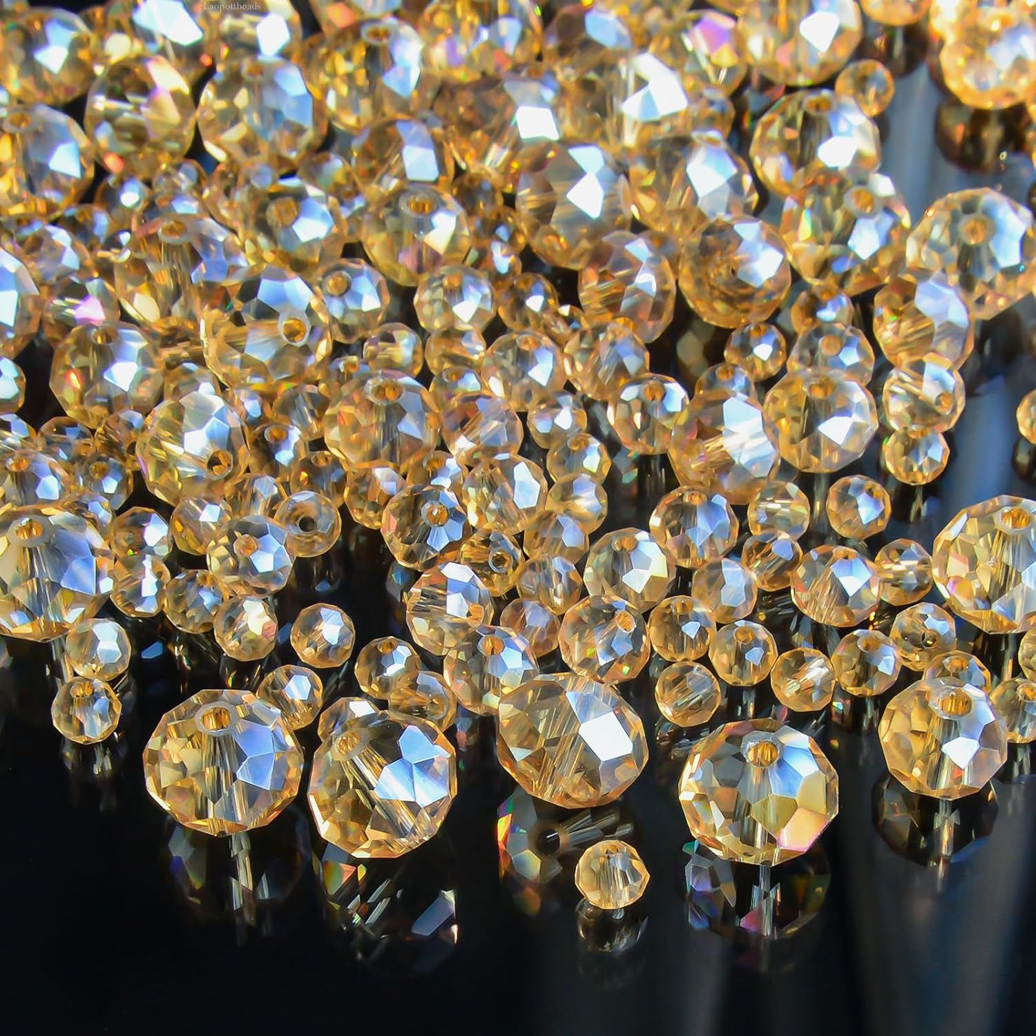 460Pcs 8mm Crystal Glass Beads for Jewelry Making Beads for Bracelets Necklace Pendants Making Supplies(Gold Champagne)