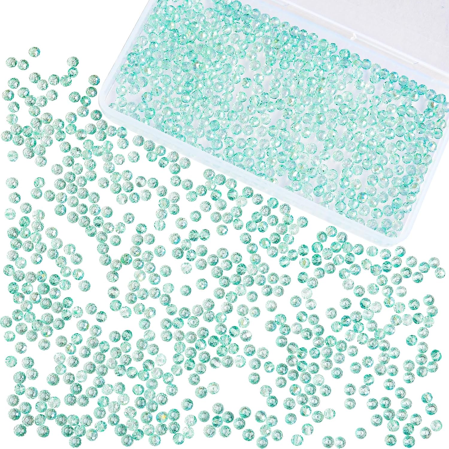 1200Pcs 4mm Crystal Glass Beads for Jewelry Making Beads for Bracelets Necklace Pendants Making Supplies(Light Blue Green)