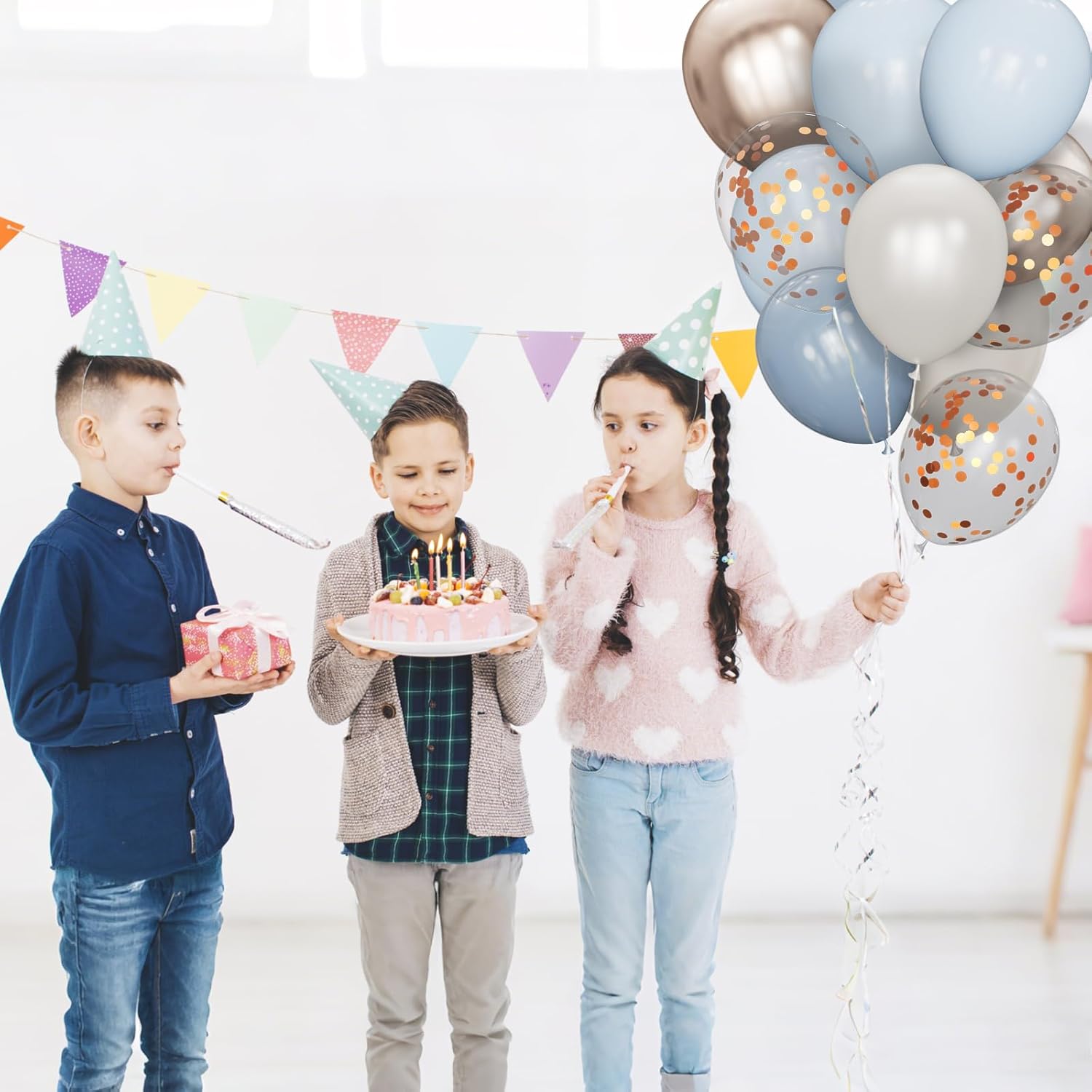 - Excellent Blue and Gold Balloons Party Supplies Premium Material: 68 balloons and 2 ribbons. All globos azules party balloons are made of safe and non-toxic latex. Can be used as children's party supplies with confidence.