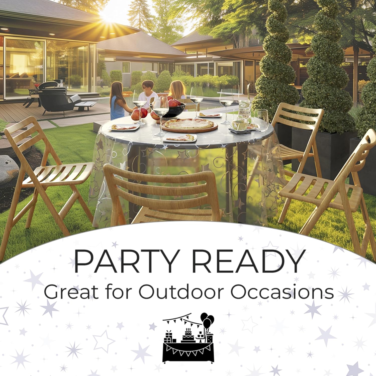 - Quality: Made from premium Tablecloth Plastic, these round Tablecloths Plastic are waterproof, durable, and spill-resistant. Use these Plastic Table Covers for worry-free protection. These Silver Star table cloths for parties are great for indoor or outdoor events, ensuring your tables stay mess-free and stylish.