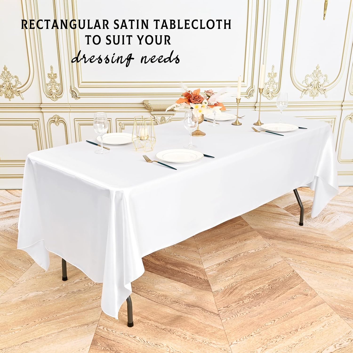 6 Packs Satin Tablecloth 57 x 108 Inch White Rectangular Table Cloth Silk Tablecloth Smooth Fabric Overlay Satin Table Cover Decoration for Wedding Party Banquet Events