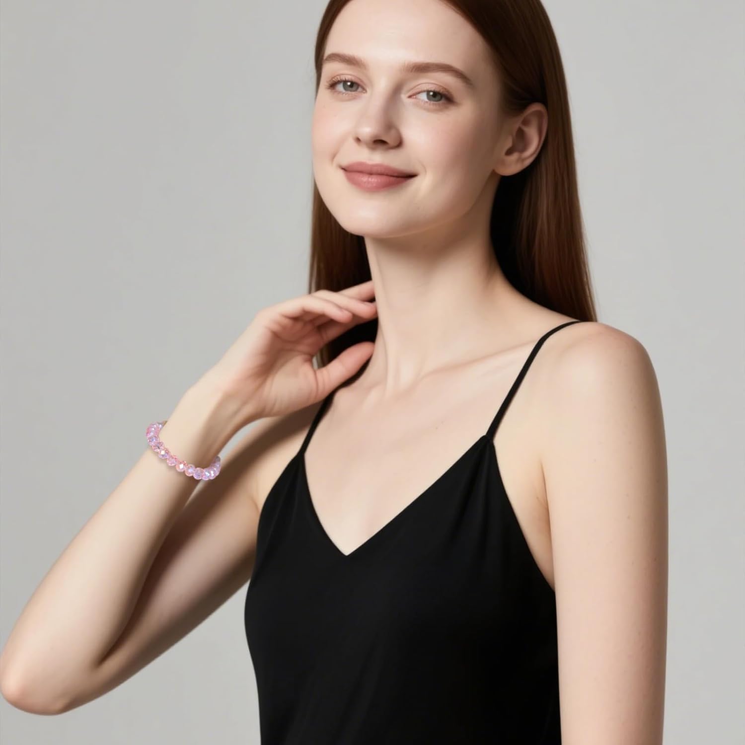 800Pcs 4/6/8/10mm Crystal Glass Beads for Jewelry Making Beads for Bracelets Necklace Pendants Making Supplies(Pink)