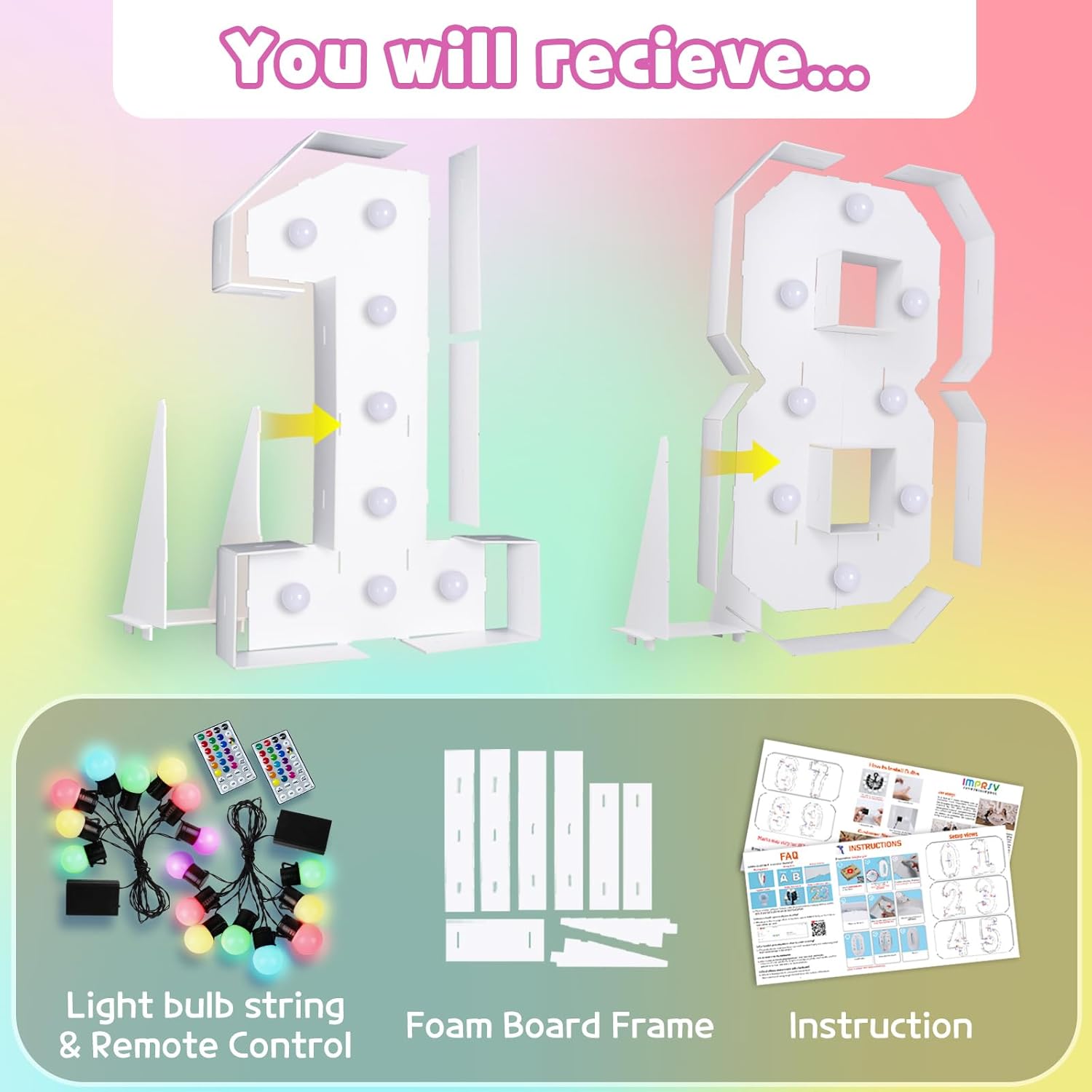 Marquee Numbers 18th-Birthday Decoration: Colorful 3FT Large Light Up 18 Year Old Birthday Decorations Anniversary Backdrop for Boys Girls Cardboard Sign 18 Colors Number 18 Mosaic Balloon Frame