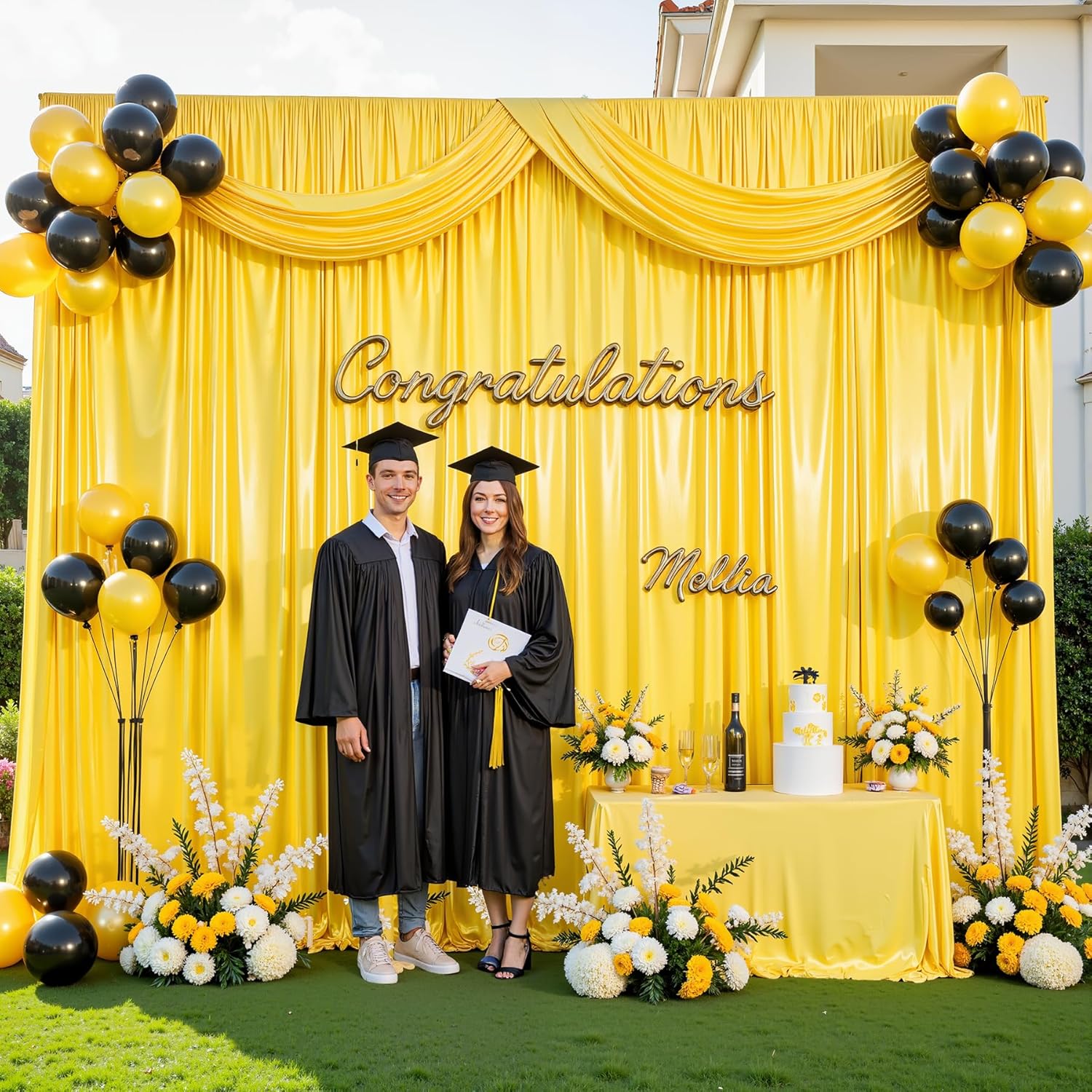 - Gold Drapes for Backdrop Wide Compatibility:The shimmer gold backdrop is suitable for weddings,baby showers,birthday parties,Photography,anniversaries,graduations,home decor,also can be used as a live video background, selfie wall, or creative curtains.The gold wedding backdrop curtains match with balloons, banners,photo props,flower and other party decorations will make the scene more beautiful and elegant.