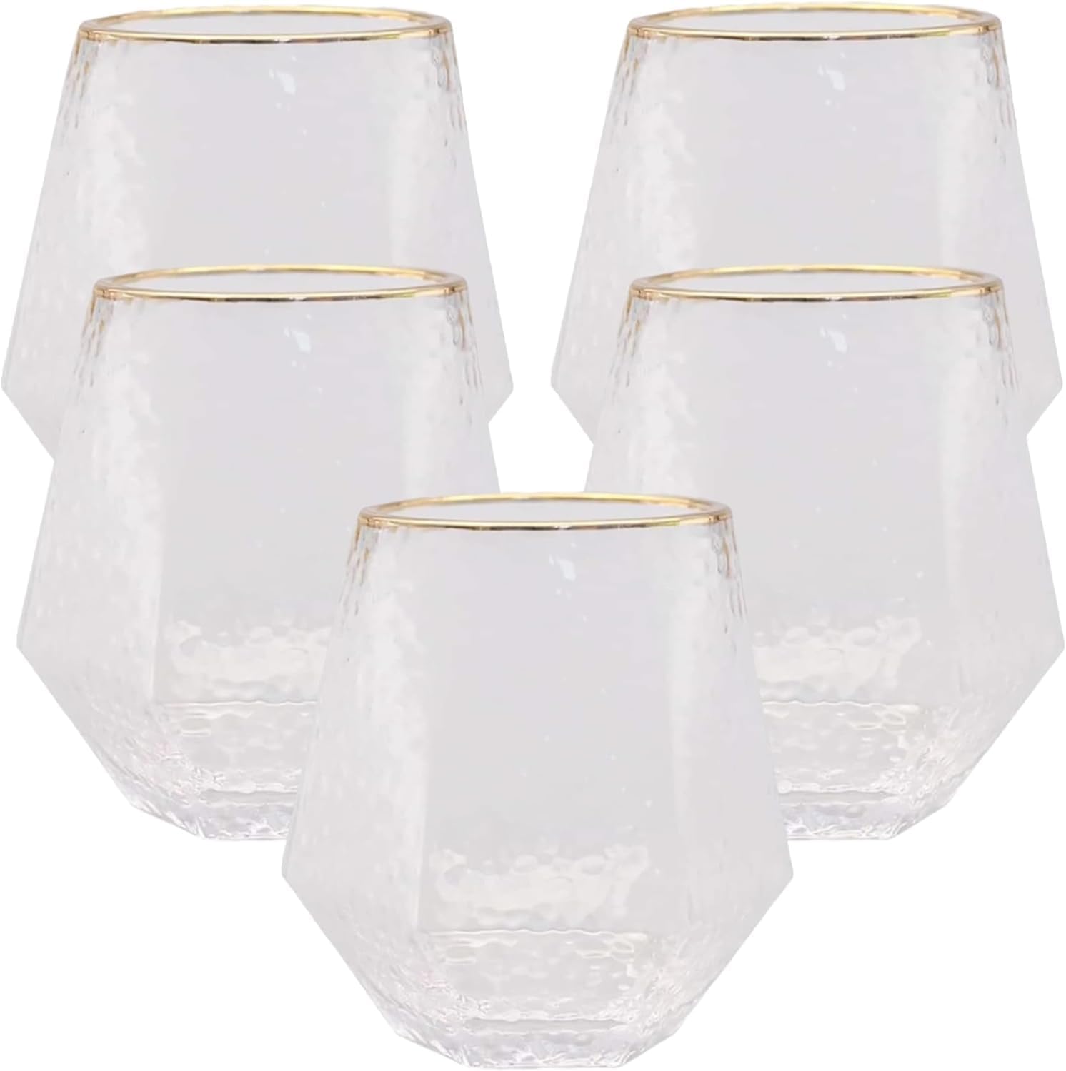 - Unique Hammered Clear Design – A fresh take on plastic drinkware with a stunning hammered texture and crystal-clear finish that mimics upscale glassware. 40 Diamond-Shaped Disposable Glasses: Stand out with our unique diamond-shaped, clear plastic glasses. Perfect for wine, champagne, whiskey, and cocktails, these elegant 12 oz stemless cups add a stylish touch to any event, ensuring your guests enjoy both beauty and functionality.
