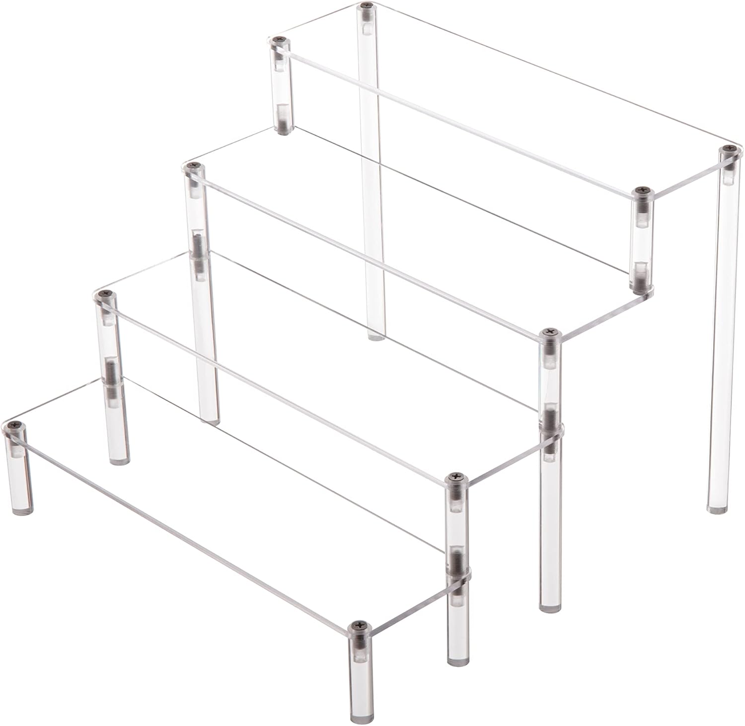 BYCY Acrylic 4-Tier Riser Display Shelf for Figurines, Desserts Holder, Collections Organizer and Cosmetic Items Shelf (4tier-Clear)