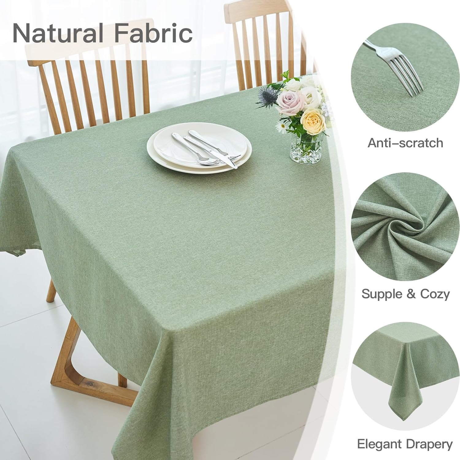 - **Premium Fabric: ** Crafted of premium polyester jacquard fabric to ensure the protection of your table and furniture from scratches. This table cloth is durable, soft, supple, spill-proof, wipeable, and wrinkle resistant.