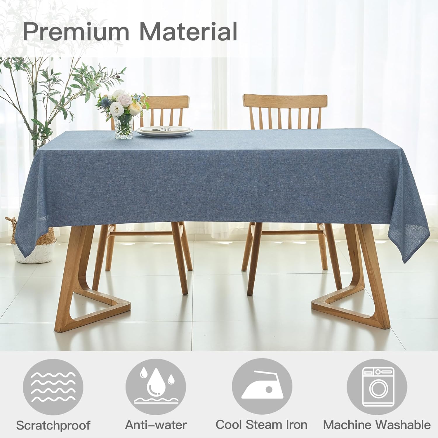 maxmill Linen Textured Rectangle Tablecloth Water Resistant Wrinkle Free Spill-Proof Stain Proof Table Cloth for Dining Room Decoration Banquet Party Wedding Holiday Dinner, 52 x 84 Inch Demin Blue