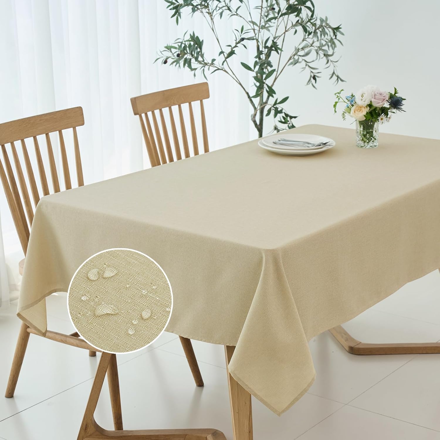 maxmill Square Linen Textured Tablecloth Waterproof Spillproof Wrinkle Free Soft Slubby Textured Table Cloth for Dinner and Party Washable Wipeable Fabric Table Cover Decoration, 60 x 60 Inch, Beige