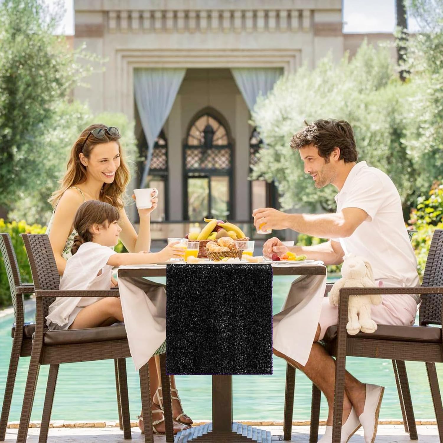 10 Packs 12 x 72 inches Sequin Table Runner, Black Glitter Table Runner for Birthday Party Supplies Wedding Engagement Baby Shower Holiday Celebration Event Decorations