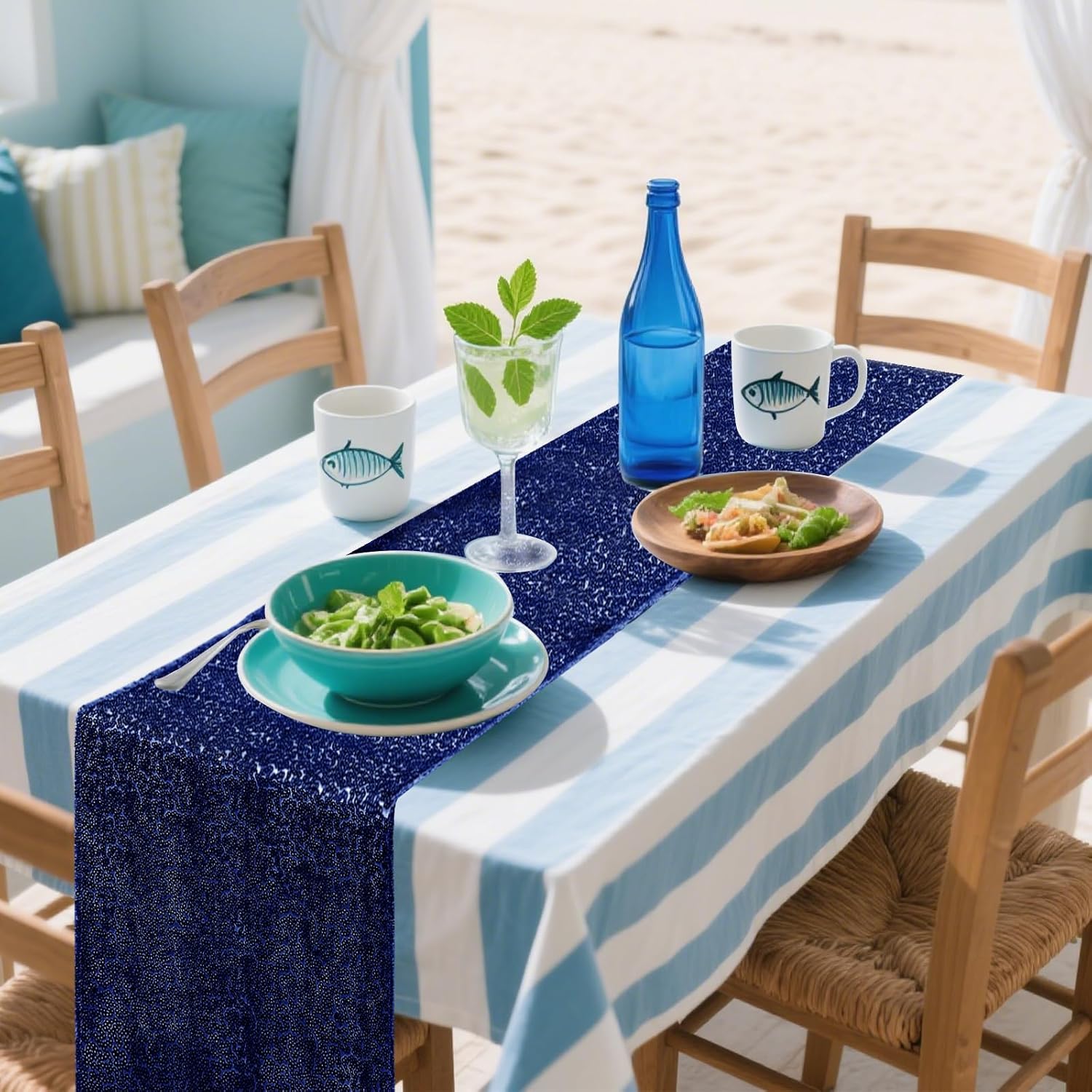 6 Packs 12 x 72 inches Sequin Table Runner, Navy Blue Glitter Table Runner for Birthday Party Supplies Wedding Engagement Baby Shower Holiday Celebration Event Decorations