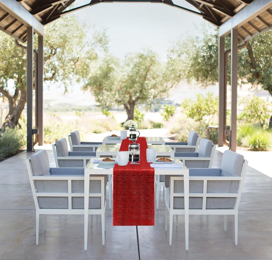 6 Packs 12 x 72 inches Sequin Table Runner, Red Glitter Table Runner for Birthday Party Supplies Wedding Engagement Baby Shower Holiday Celebration Event Decorations