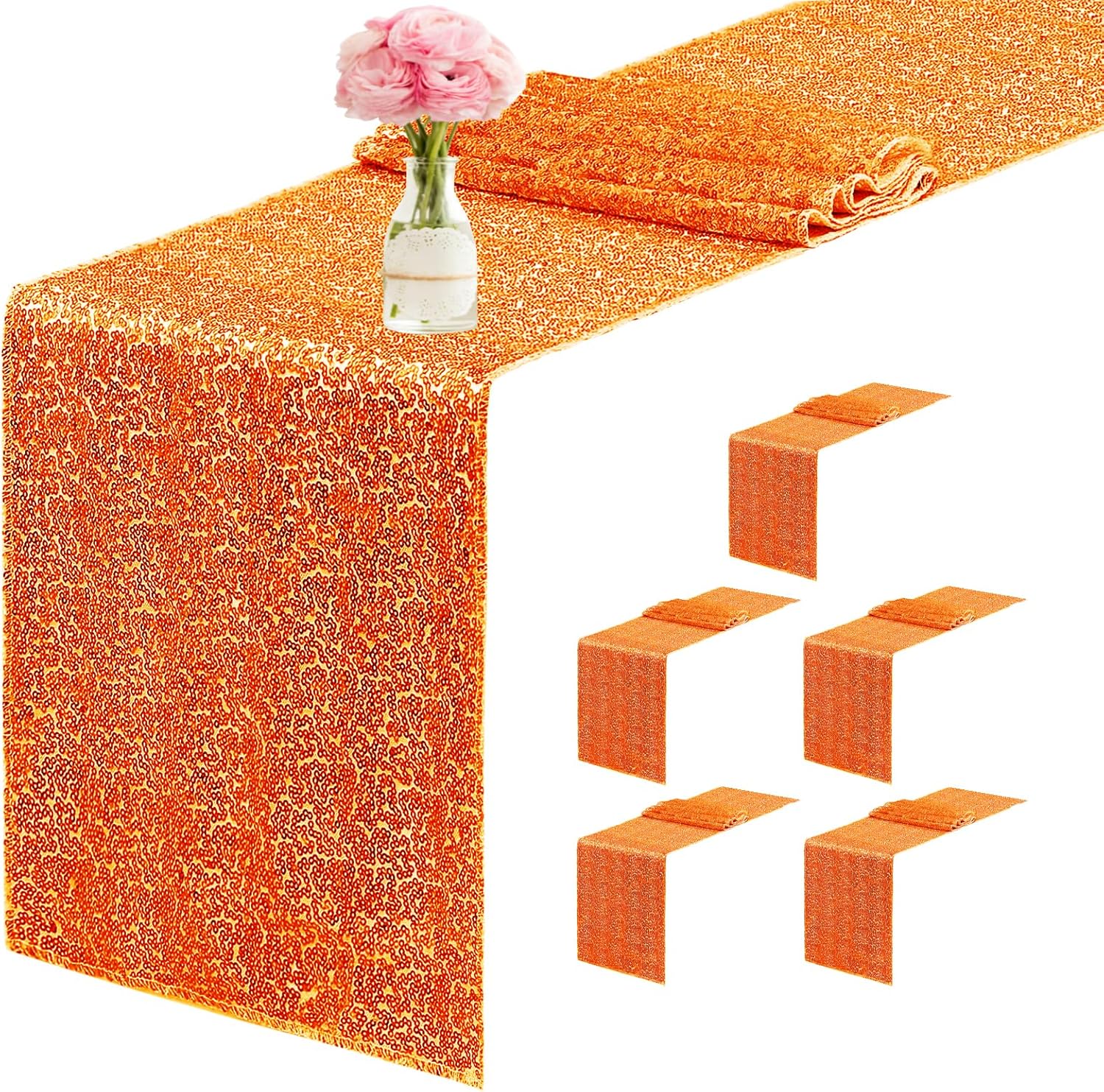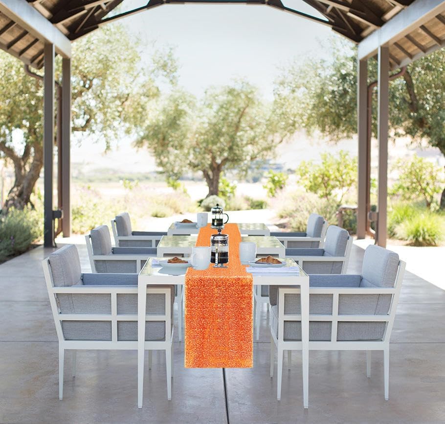 6 Packs 12 x 72 inches Sequin Table Runner, Orange Glitter Table Runner for Birthday Party Supplies Wedding Engagement Baby Shower Holiday Celebration Event Decorations