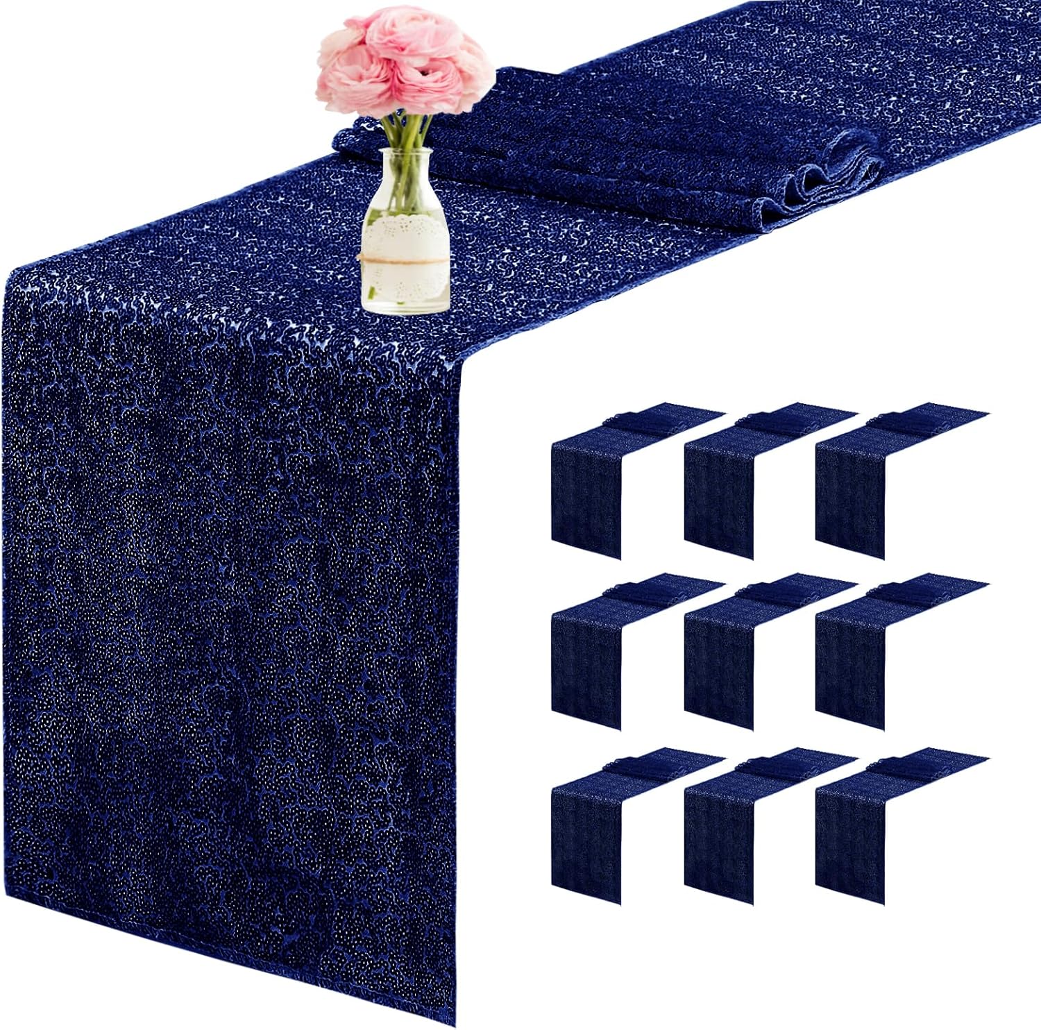 10 Packs 12 x 72 inches Sequin Table Runner, Navy Blue Glitter Table Runner for Birthday Party Supplies Wedding Engagement Baby Shower Holiday Celebration Event Decorations