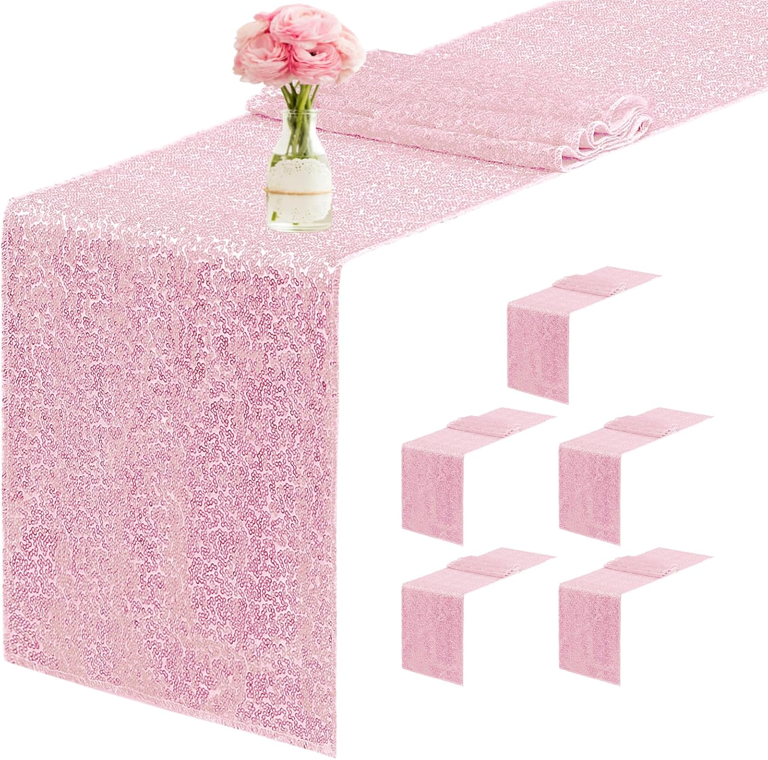 6 Packs 12 x 72 inches Sequin Table Runner, Pink Glitter Table Runner for Birthday Party Supplies Wedding Engagement Baby Shower Holiday Celebration Event Decorations