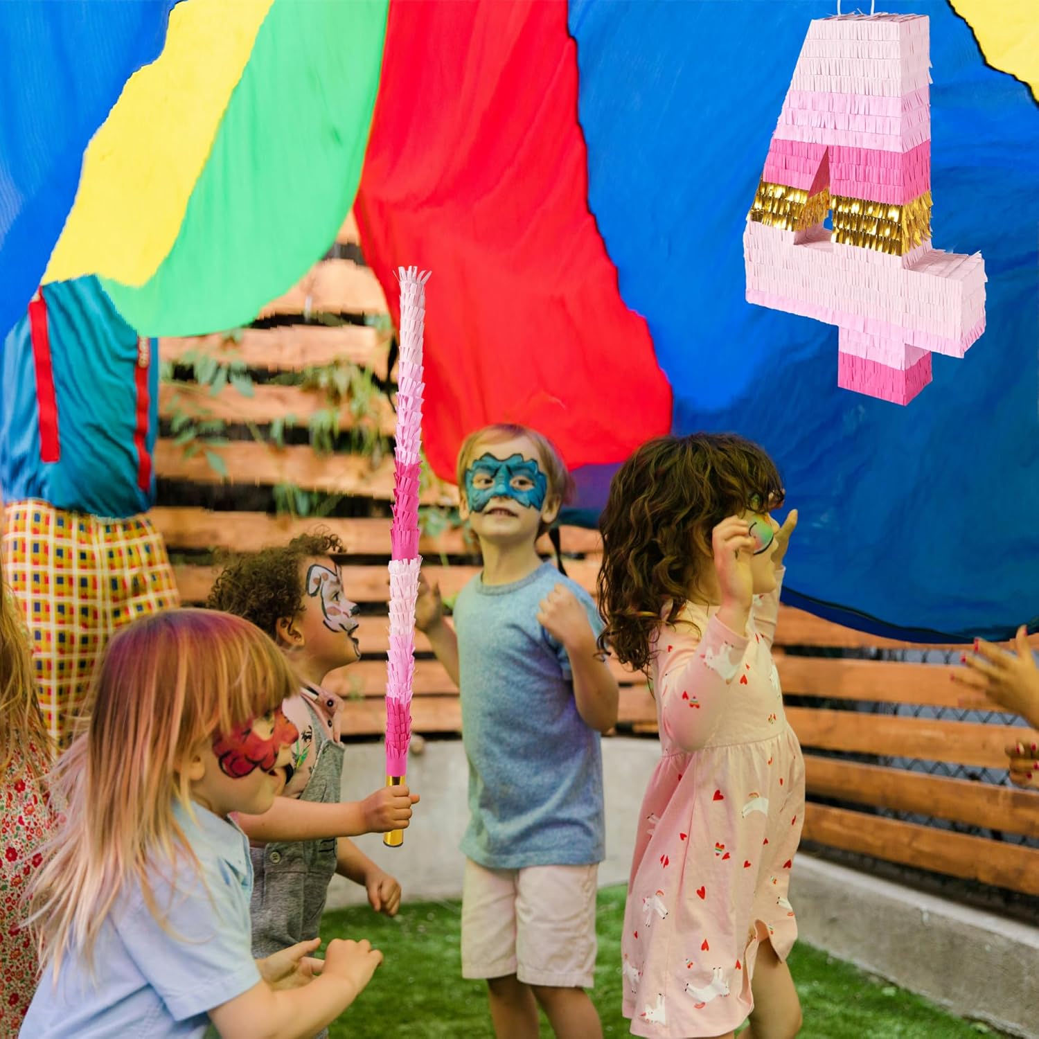 - [Size] Number 4 piñata: 20 x 13.3 x 3 in. Piñata stick: 30 in. The large piñata is more noticeable as a party decoration, the extended stick makes hitting easier and the stick is reusable.