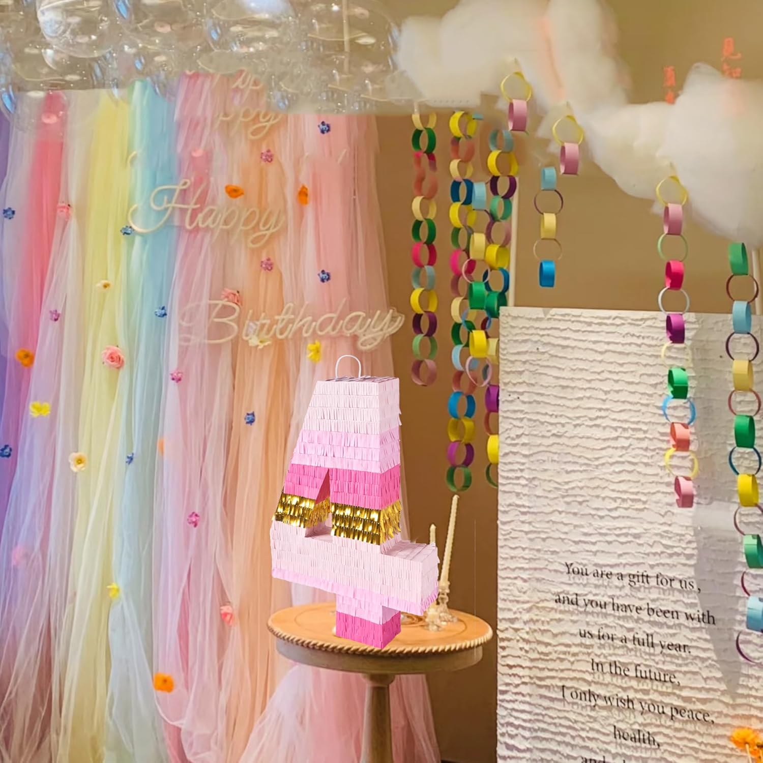 - [Full of Fun] Tap the piñata with a stick until the candies inside fall out, increasing the interactivity and fun atmosphere of the party. The gradual pink piñata with gold color is equally eye-catching as a decoration, making your party unique!