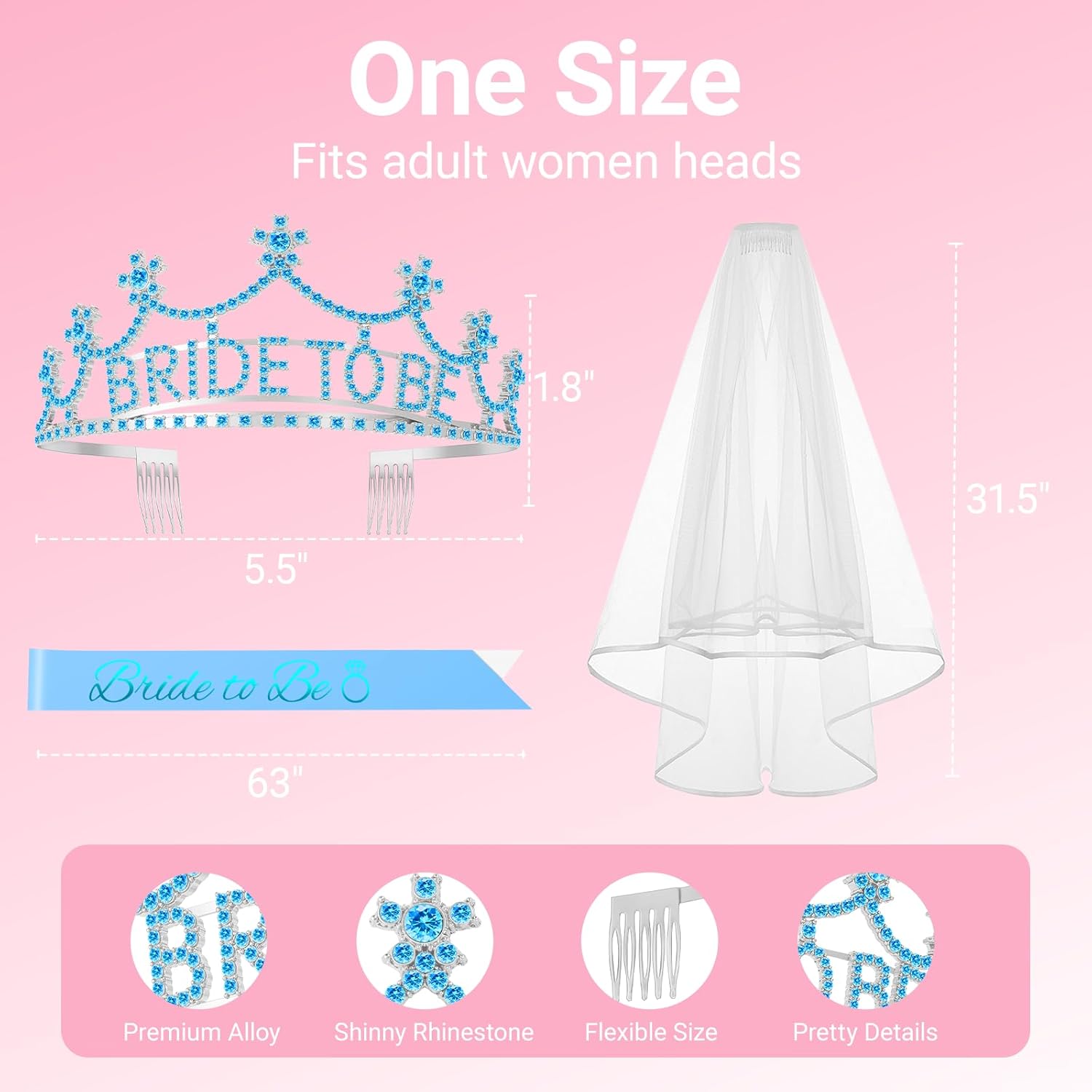 3Pcs Bride to Be Crown with Sash and Veil for Bachelorette Party Decorations,Bridal Shower Accessories for Gift, Favors