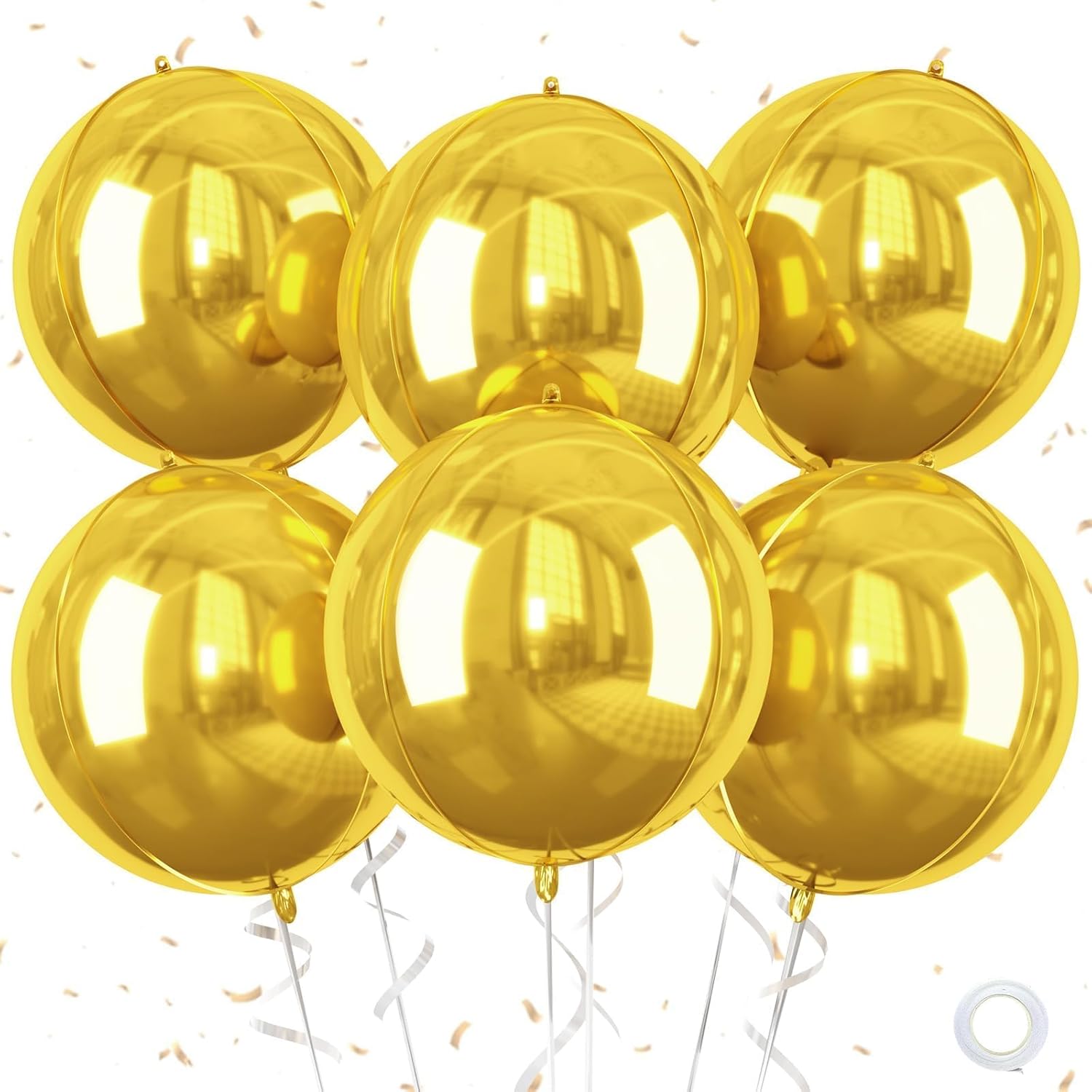 - 【PACKAGE CONTAIN】 This package includes 6 pcs 22-inch gold round 4D foil balloons, 1 pc straw and 1 pc ribbon. These large, eye-catching balloons are perfect for elevating your party decor with a bold and stylish touch.