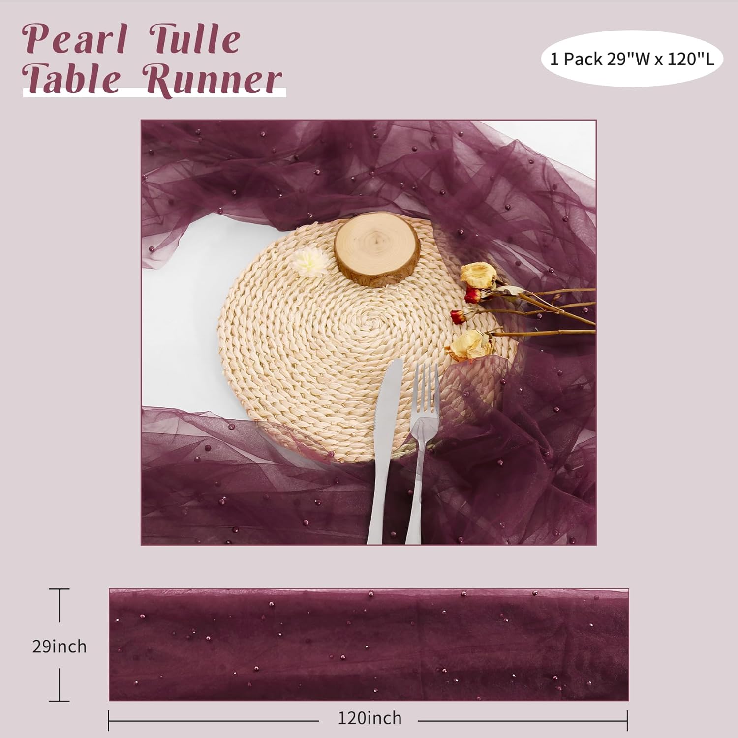 - 【Package Include】 You will receive 1 pieces of 29 x 120 inches pearl tulle table runners. The pearls delicately added give this an elegance to elevate table decor, it's long enough to fit different size tables and chairs, These tulle table runner with pearls are skin-friendly. There are lots of different colors for you to choose. Perfect to decorate your tables.