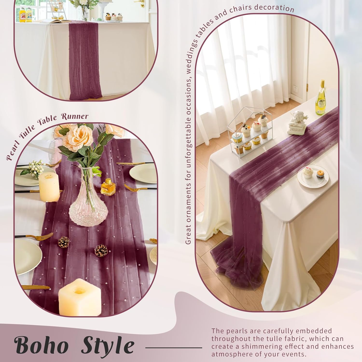- 【Package Include】 You will receive 6 pieces of 29 x 120 inches pearl tulle table runners, the quantity is sufficient for your daily use and replacement needs, it's long enough to fit different size tables and chairs, These tulle table runner with pearls are skin-friendly. There are lots of different colors for you to choose. Perfect to decorate your tables.