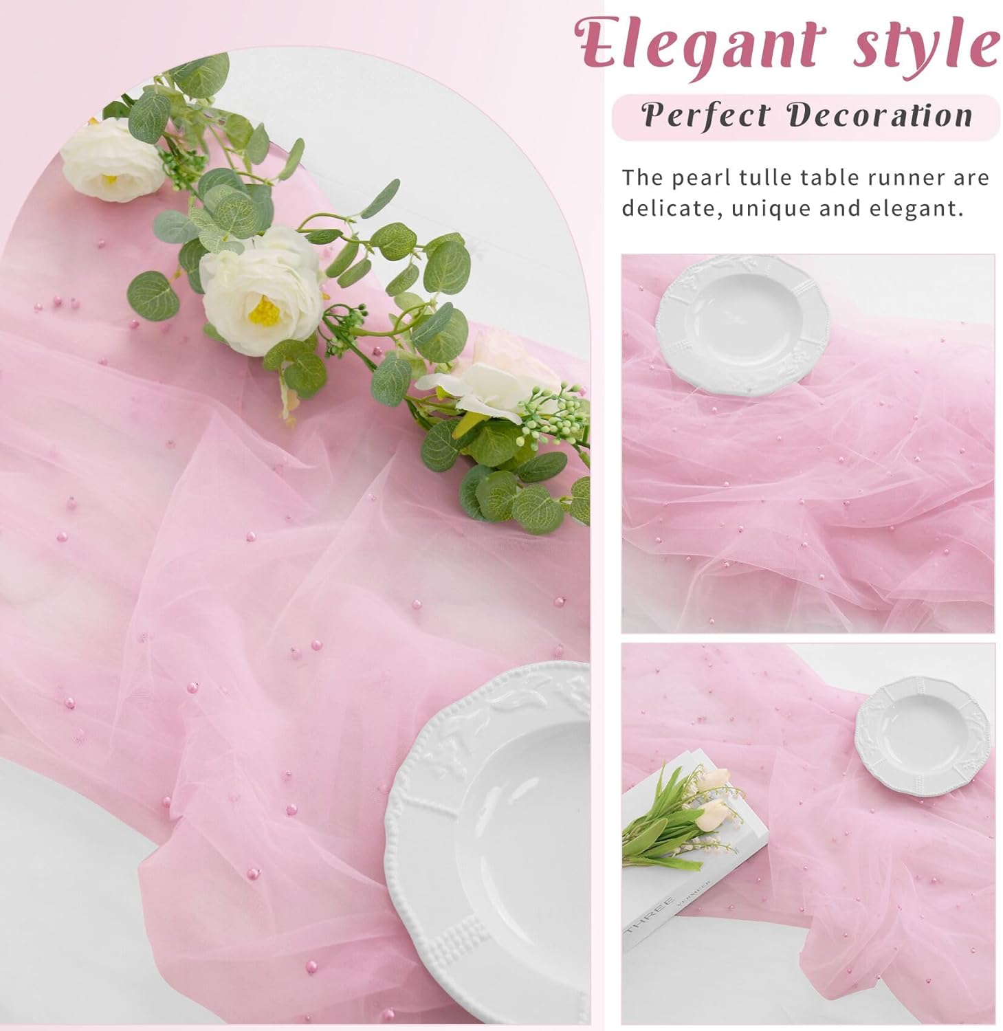 - 【Package Include】 You will receive 6 pieces of 29 x 120 inches pearl tulle table runners, the quantity is sufficient for your daily use and replacement needs, it's long enough to fit different size tables and chairs, These tulle table runner with pearls are skin-friendly. There are lots of different colors for you to choose. Perfect to decorate your tables.