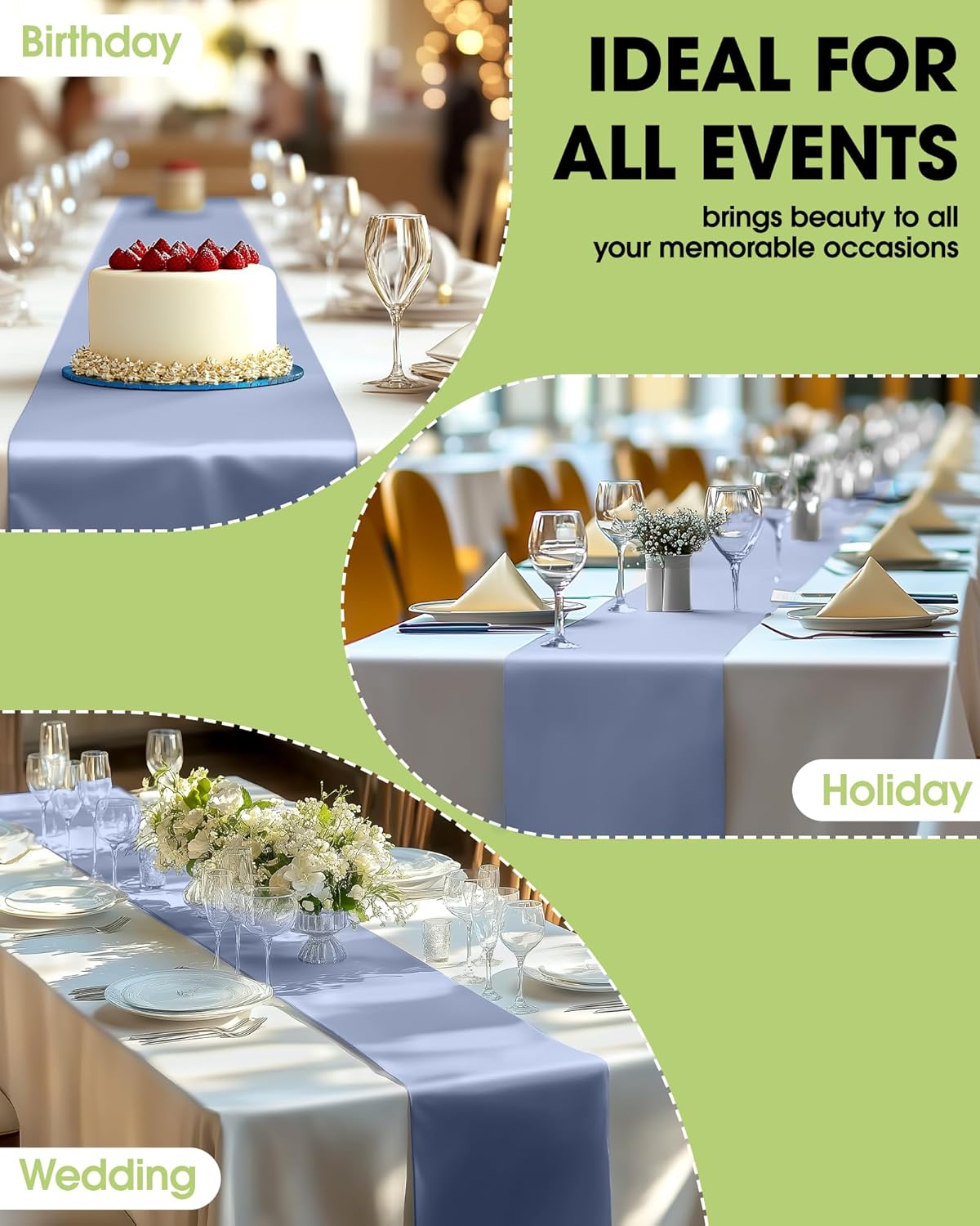 - PREMIUM PLASTIC MATERIAL: Made from premium plastic, this dusty blue runner for table is water-resistant and oil-proof, preventing stains and spills. The tear-resistant material adds extra durability, allowing the runner to withstand accidental pulls. Keep your table looking elegant for longer with Pureegg!