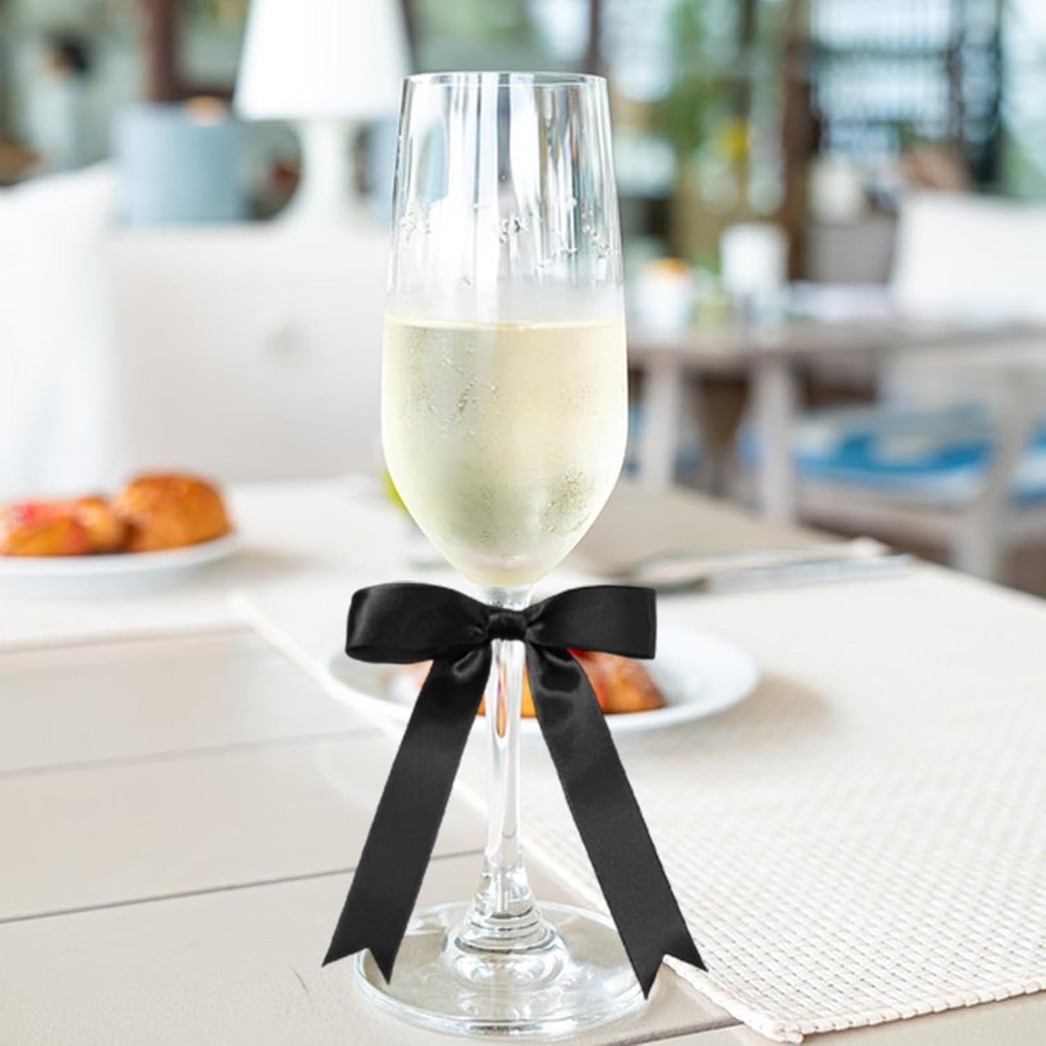30Pcs Satin Ribbon Black Bows 5x7 Inch Twist Tie Bow for Gift Wrapping Champagne Bottle Cake Treat Bag Craft DIY Gift Christmas Birthday Party Balloons & Garland Home Decor