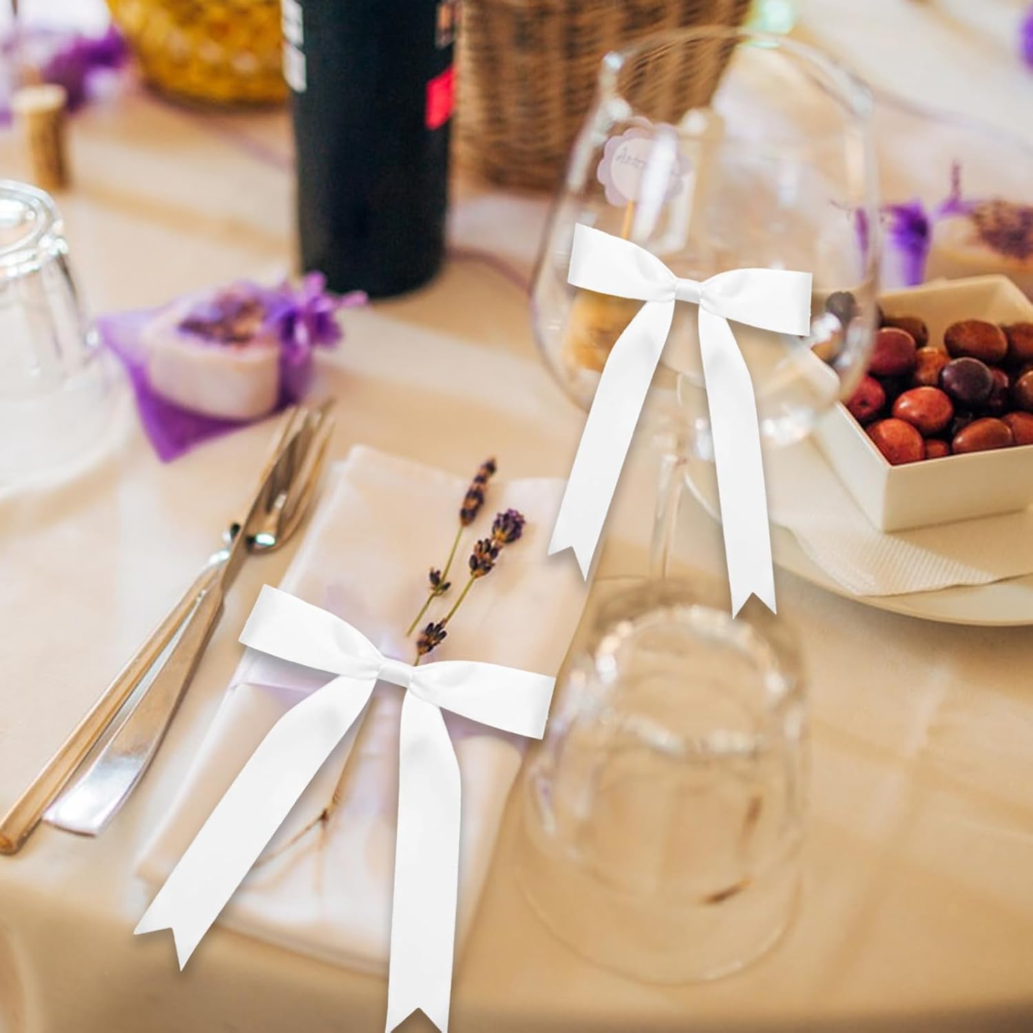 - Pre-tied satin bows with built-in twist ties , which can be easily bound and unlocked, be repeated to use. let you instantly elevate gift bags, treat boxes, or party favors. No messy ribbon tying—just attach and go! Perfect for last-minute wrapping or bulk crafting projects.
