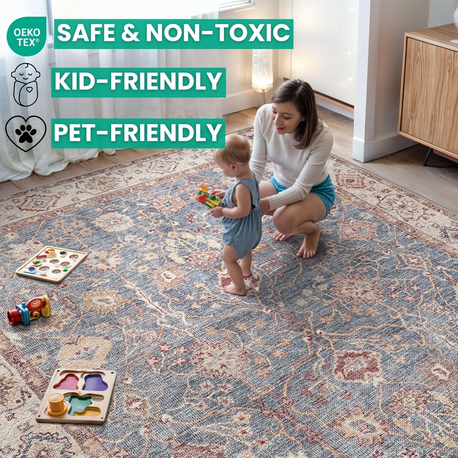 - EASY TO SETUP AND NON-SLIP: This one-piece machine washable rug with non-slip backing attached eliminates any additional setup. Simply unfold and lay flat upon arrival in the desired space. Non-slip backing prevents the rug from moving or sliding without the need for additional rug pad or grippers.