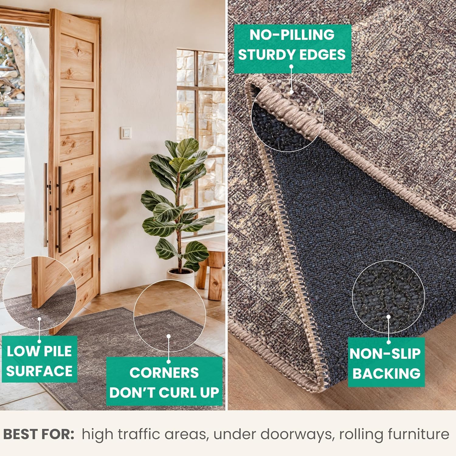 - EASY TO SETUP AND NON-SLIP: This one-piece machine washable rug with non-slip backing attached eliminates any additional setup. Simply unfold and lay flat upon arrival in the desired space. Non-slip backing prevents the rug from moving or sliding without the need for additional rug pad or grippers.